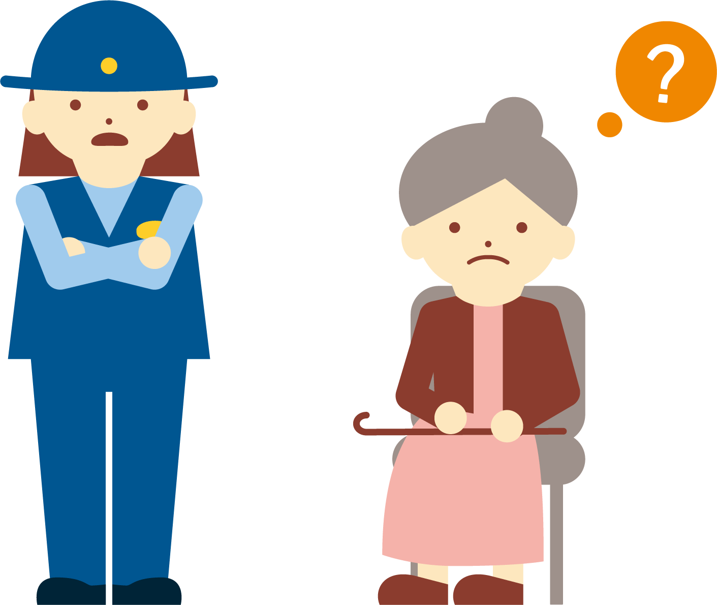 認知症高齢者が、外出した際に迷子になり、警察に保護されるケースは年々増加しています。令和5年中、京都府内で警察に保護された認知症高齢者の数は、4007人で、1日11人保護されている計算になります。この数字を多いと思いますか?少ないと思いますか?では、警察に保護された後はどうなるかご存じでしょうか?法律では「できるだけすみやかにご家族や知人、関係者に通知し、その者の引取りについて必要な手配をしなければならない。」と規定されています。そこで警察は家族等に連絡をし、迎えに来られるまで警察署等で待っていただきます。トイレに行きたくなったり、またどこかへ行かれても困るので、警察官が一緒に待つことになりますが、居心地の良い部屋があるわけでもなく、小部屋でパイプ椅子に座って待っていただきます。それって、本人にとっては居心地の悪い時間ですよね。