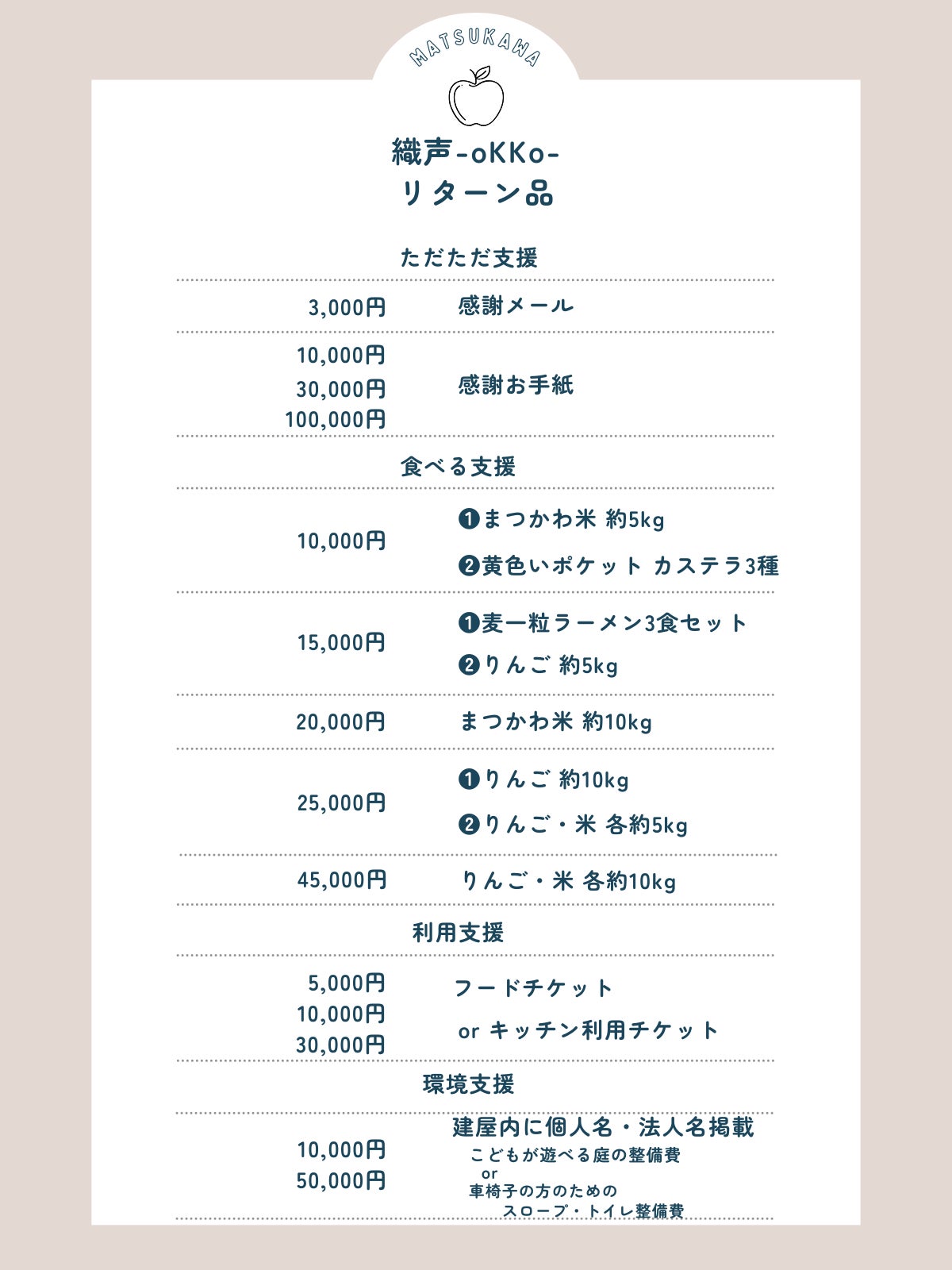 リターン品には、私が大好きな松川村を知ってもらえるようなものを用意しました!どれを選んでも支援して良かったと思ってもらえると思います^^