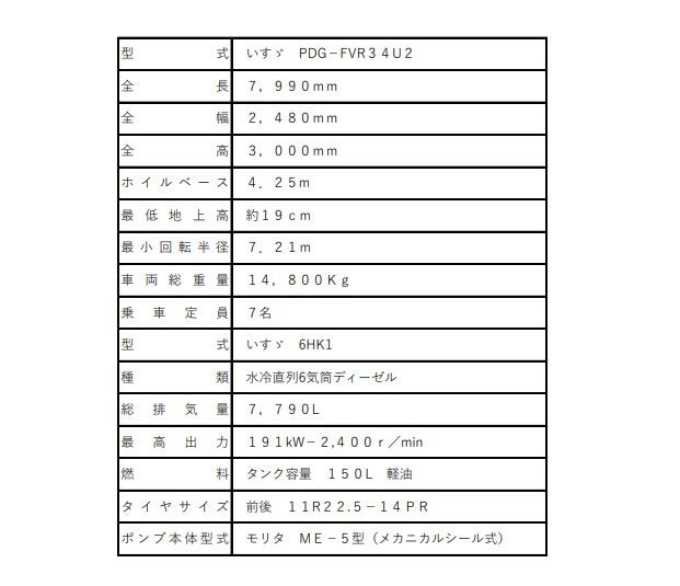 5トン水槽付き消防ポンプ自動車の海上輸送及び技術サポートのみのリターン無しの方へは感謝を込めたお礼のメールをお送りいたします。