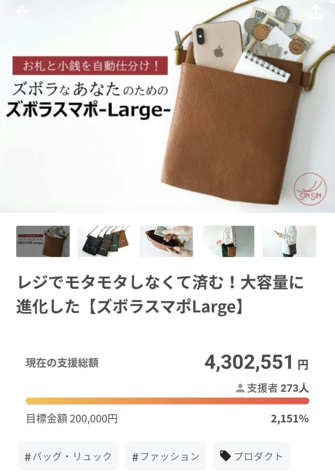 レジでモタモタしなくて済む!大容量に進化した【ズボラスマポLarge】を応援購入いただき誠にありがとうございます!