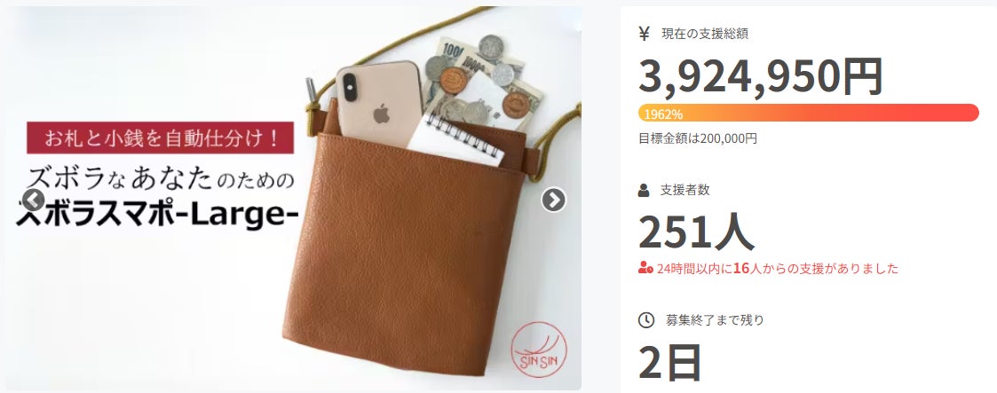 この度は、レジでモタモタしなくて済む!大容量に進化した【ズボラスマポLarge】を応援購入頂き誠にありがとうございます!【ズボラスマポLarge】 の製作に必要な資材や革も無事到着し、順調に製作をさせて頂いております。8月21日から順次完成した作品の発送を開始させて頂き、8月29日までには全ての作品を発送を出来るようにスタッフ一同尽力をさせて頂きます。また発送開始等の進捗がございましたら活動レポートにてご報告をさせて頂きます。作品に関して気になる事や、何かご不明な事がございましたら、campfireのメッセージか下記のお電話からお気軽にご連絡頂けますと幸いでございます。引き続き新進工房をどうぞよろしくお願いいたします*********************【ズボラスマポLarge】に関する商品情報や製作する職人の想いを発信しております。youtubeを通じて、作品が到着するまでお楽しみくださいませ♪https://youtu.be/_5lpSD-tW5M?si=9g-3775snVEfcIaTお問い合わせ先新進工房 カスタマーサービス電話:072-968-8181受付時間:平日 10:00 - 17:00*********************