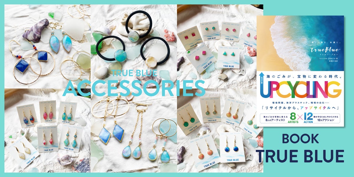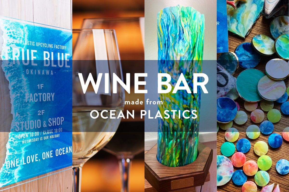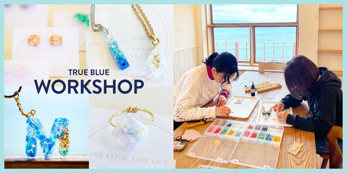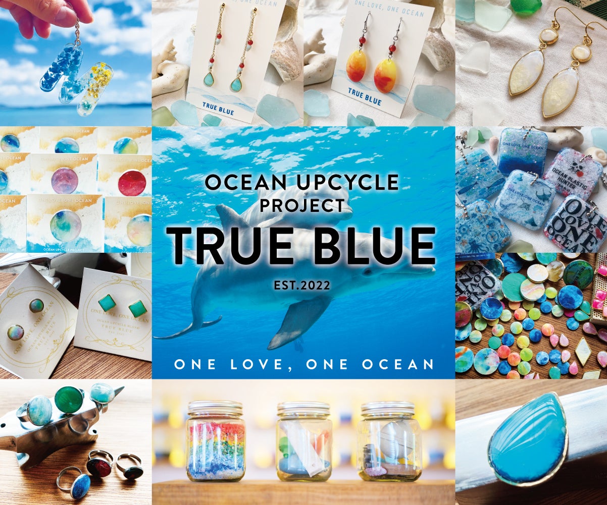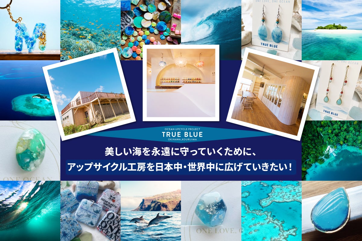 私たち「TRUE BLUE」は、沖縄・古宇利島の工房&ショップを拠点に、海で回収した海洋プラスチックを素材にしたアート作品、生活雑貨等を制作・販売したり、誰もが気軽に楽しめるアップサイクル体験を提供しています。