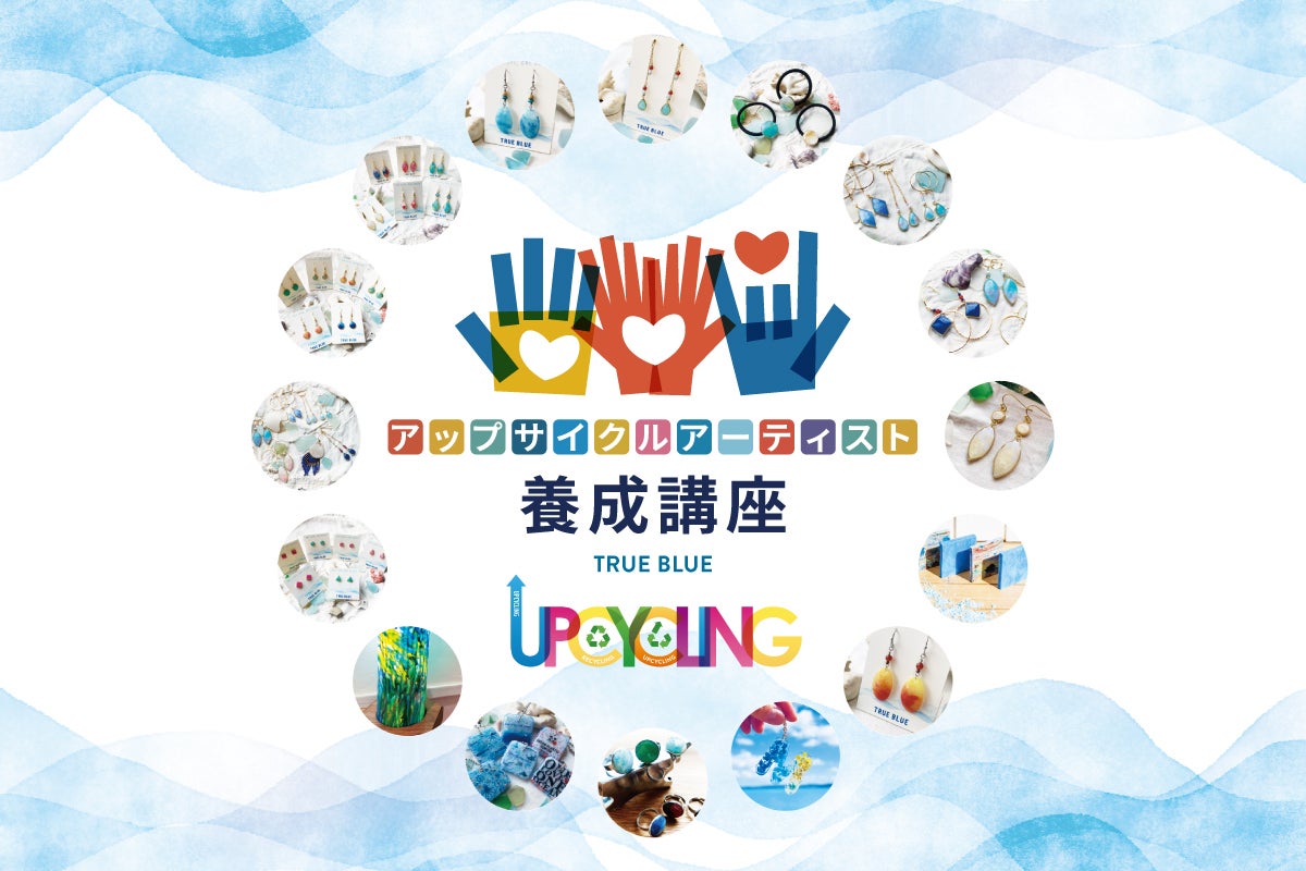 海洋プラスチックから、アクセサリーなどのアート作品を作る人を増やしていくために、「アップサイクルアーティスト養成講座」を開催しています。TRUE BLUEが得てきた知識や技術を多くの人に共有して、海を愛する気持ちで繋がりながら、地球上の海ごみをアップサイクルして、宝物に変えていきます。
