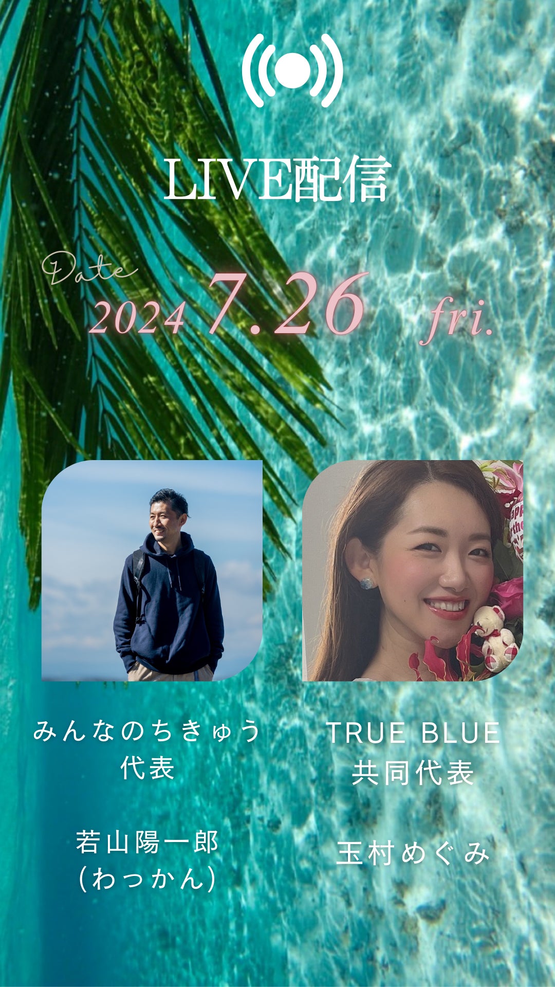 2024/07/27 14:35昨日は、みんなのちきゅう代表の、わっかんさんこと、若山陽一郎さんとインスタライブをさせていただきました。「みんなのちきゅう」は、全国で環境活動に取り組まれている活動家の方や、素敵な活動をご紹介しているWebメディアです。日本中で、かっこよく、素敵な活動をされている方々がピックアップされています!私もコラムを書かせていただいておりますので、よかったらご覧ください♪https://minchiki.com/インスタライブでは、TRUE BLUEの活動のキッカケや、これからの展開、沖縄から、日本中、世界中へ広がっていく私たちの取り組みについて、語らせていただきました。昨日のインスタライブは、こちらからご覧いただけますので、よかったらご覧になってください!https://www.instagram.com/p/C95BFNRPQQM/いよいよ、クラウドファンディング終了まで、残り4日となってまいりました!最後まで諦めずに走りますので、ぜひ、最後まで応援宜しくお願い致します!! もっと見る