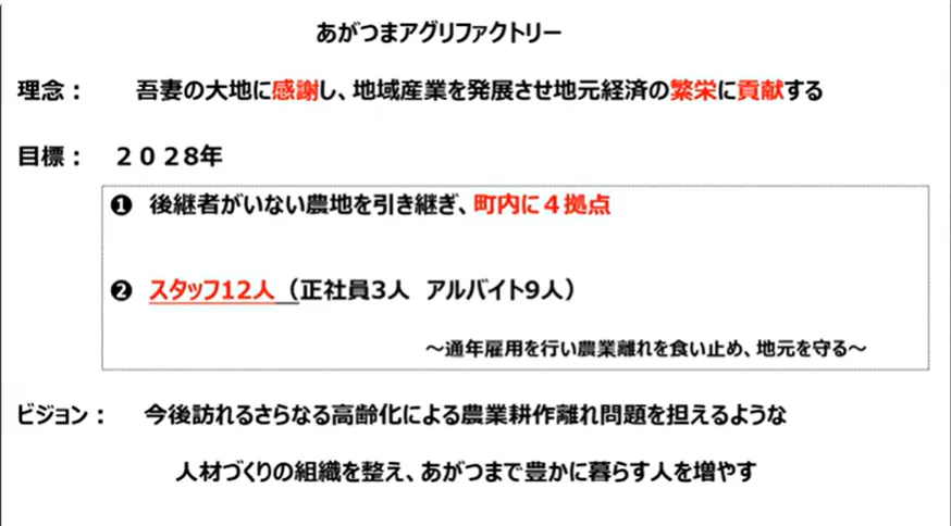 ・隣町の草津町に訪れる方にイチゴの収穫体験を楽しんでもらえるような設備を整え、東吾妻町を笑顔と活気にあふれた町にすることです。