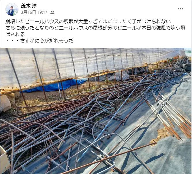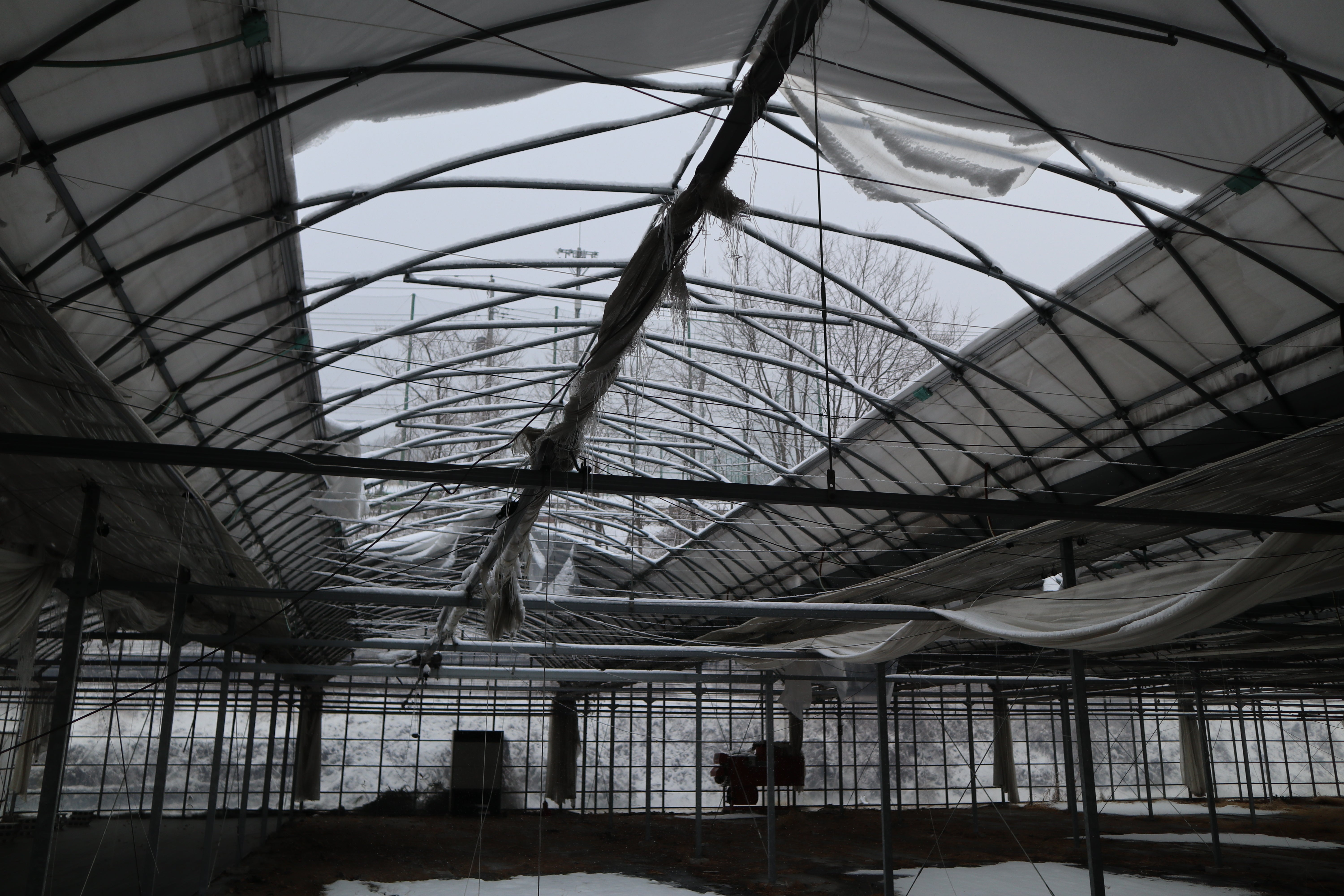 2月の大雪で屋根がつぶれてしまっただけでなく、3月には突風がハウスを直撃。