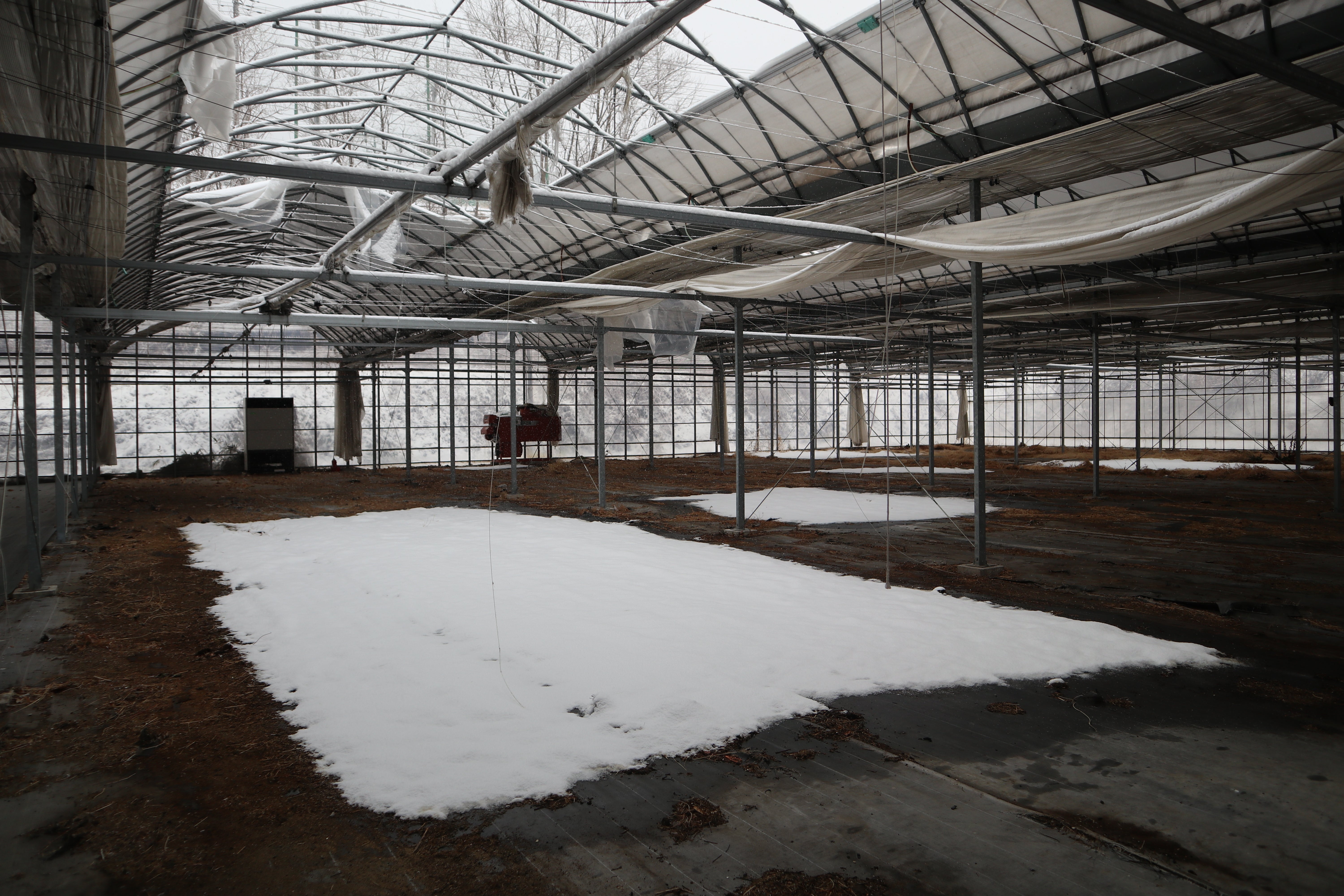 今年、2月の大雪でビニールハウスの2棟の屋根が雪の重みでつぶれしまい、来年の作付け用の苗を育てていたハウスが被害を受け、7,000本のイチゴの苗を育てることができなくなってしました。