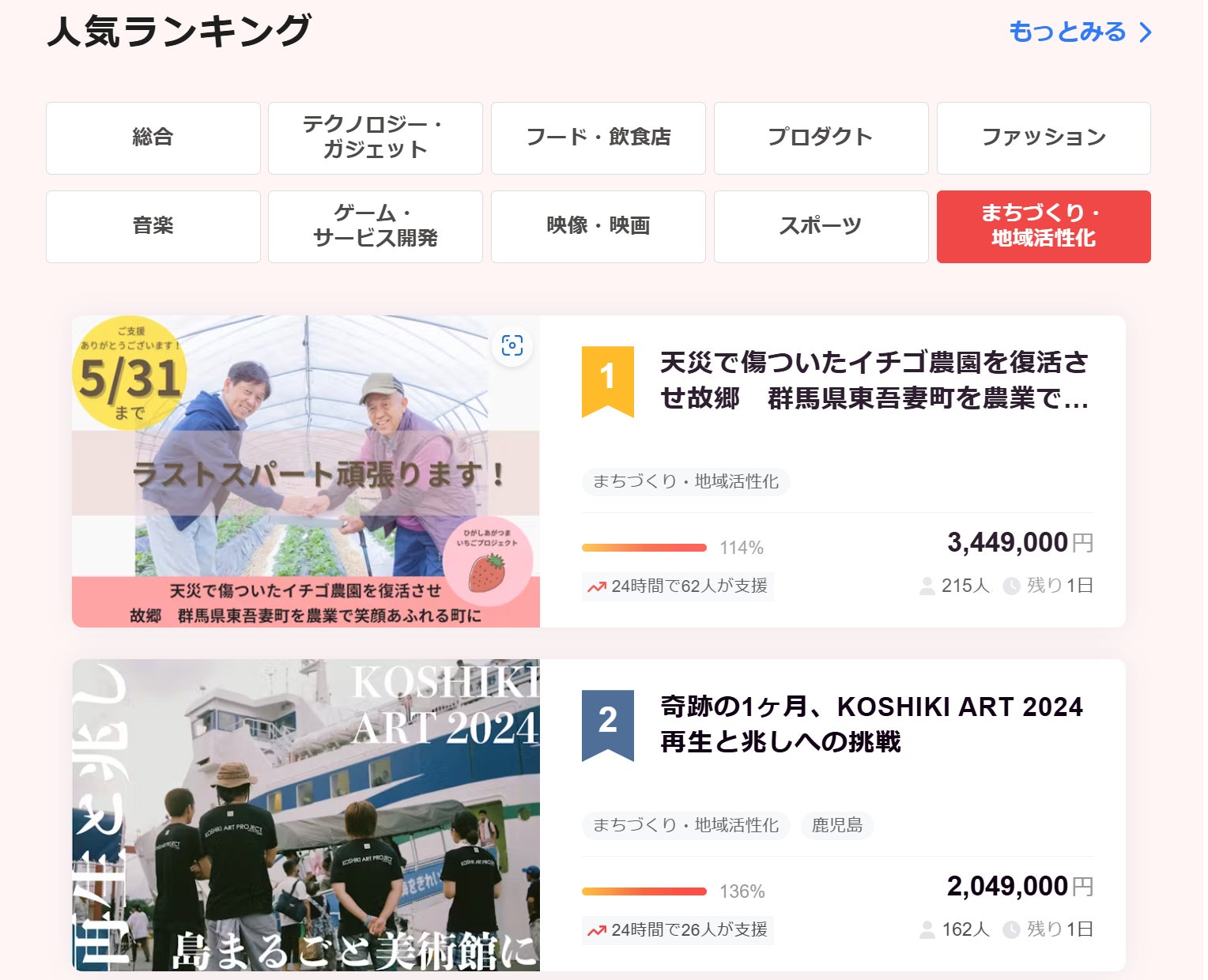 最終日前日、みなさんの応援をいただき、CAMPFIREのたくさんあるプロジェクトの中から5/30 16時時点「まちづくり・地域活性化」のカテゴリで1位に上がってきました!ありがとうございます。