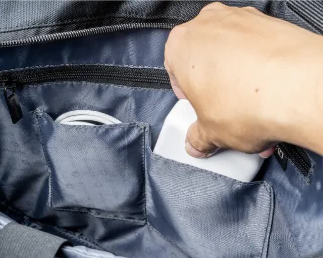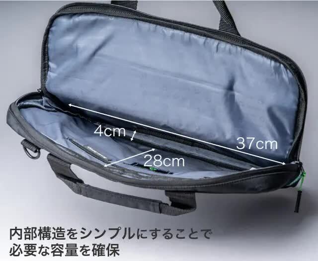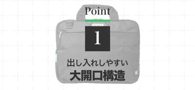 このラップトップバッグは非常に広く開口するため、物を出し入れしやすくなるよう設計されています。