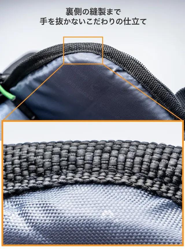 負荷のかかりやすい持ち手部分などもしっかりと縫製しています。永く使うこと、毎日使うことを念頭に置きデザインから製造まで行うことをSWISSBAGSは創業からこだわっているポイントの一つです。