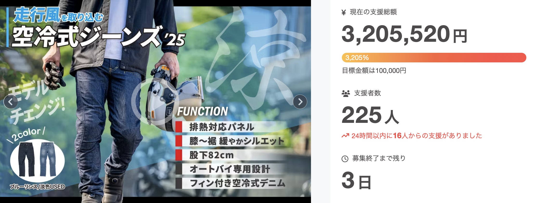 お気に入り登録してご支援が未だの方。既にご支援済みで周りで空冷式ジーンズにご興味ある方がいらしたら、是非本プロジェクトをご確認下さいませ。