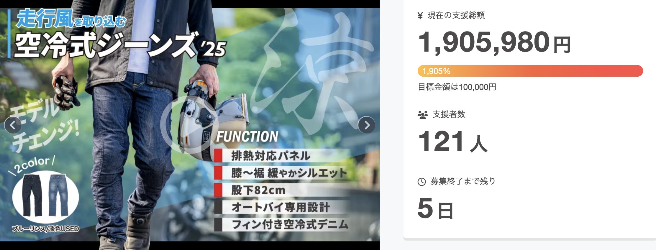 こんばんは。ローリー青野です。2/28 23:59終了の今回のプロジェクト「第2期先行予約:25年空冷式ジーンズ」も人気プロジェクトになっています。(第2期先行予約プロジェクトページ)https://camp-fire.jp/projects/820687/view?utm_campaign=cp_po_share_c_msg_mypage_projects_show既にブルーリンスは完売になっています。淡色USEDはご支援可能になります。5月の店頭デビュー時(正規価格)も即完売が予想されています。このCAMPFIRE最後の先行予約(第2期先行予約)の割引価格にて25年空冷式ジーンズのご支援をご検討頂けると幸いです。(第2期先行予約プロジェクトページ:2/28 23:59終了)https://camp-fire.jp/projects/820687/view?utm_campaign=cp_po_share_c_msg_mypage_projects_showローリー青野