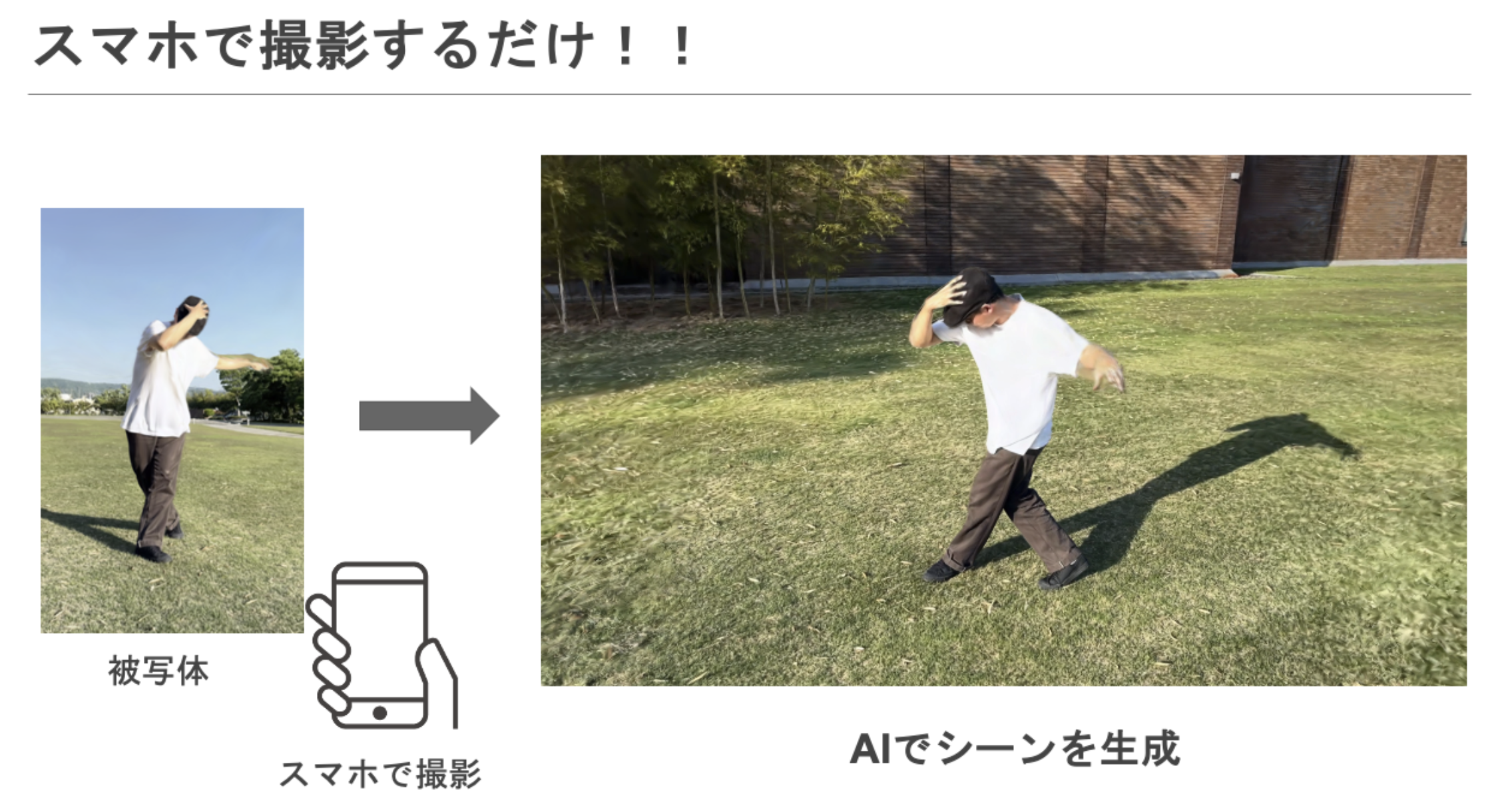 A:簡単です。動画を撮影する要領でいくつかの地点から撮影をすれば、AI技術により4D動画が生成されます。