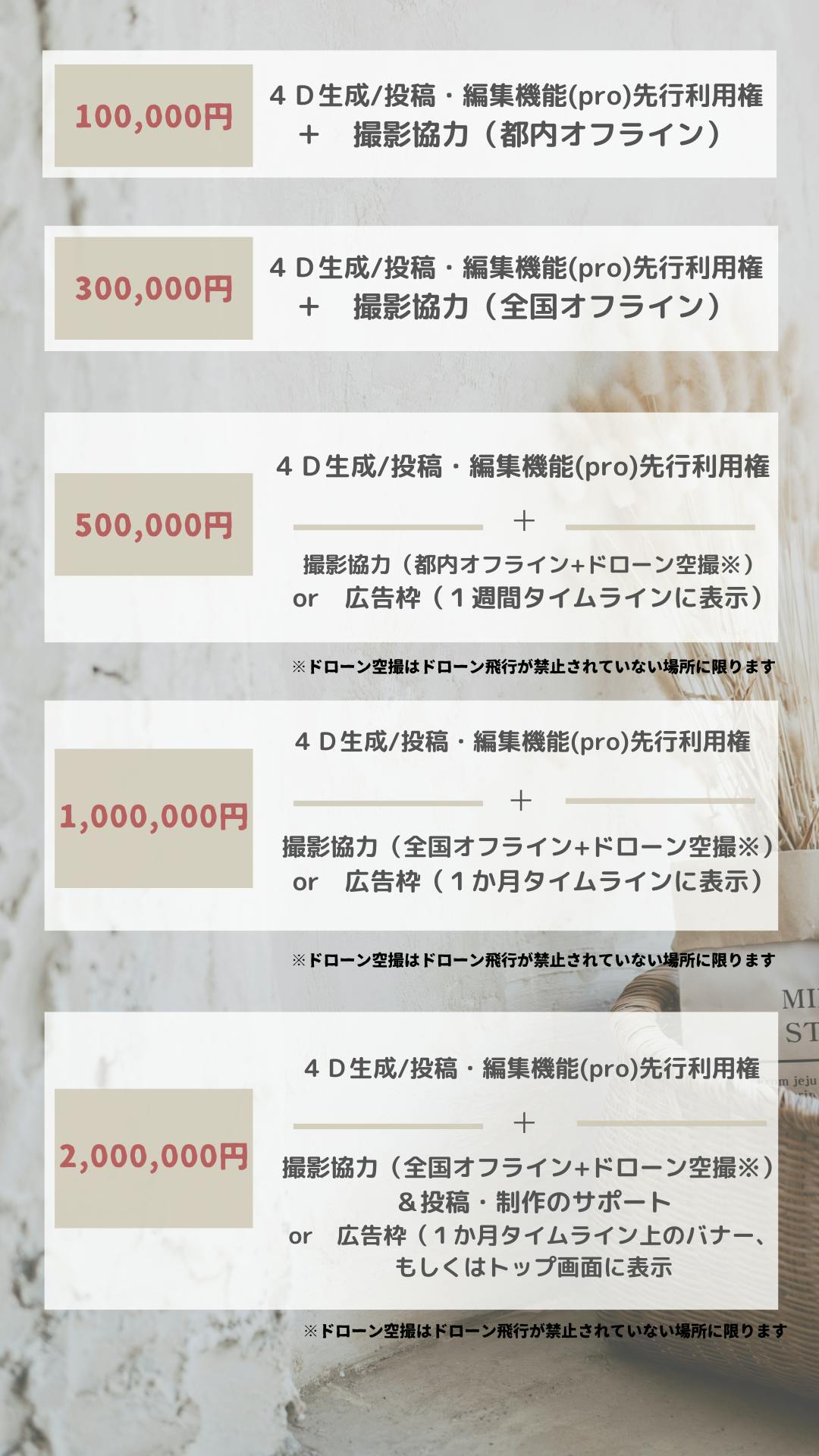 私たちのプロジェクト「4Dで思い出を残す」にご興味をお持ちいただき、ありがとうございます。このプロジェクトは、ただの記録を超えた、感動を共有するための新たなステップです。皆様のご支援があれば、私たちは人々の大切な瞬間を永遠に残す新しい方法を実現できます。皆様の力でぜひ、パラダイムシフトを起こしていきましょう!!