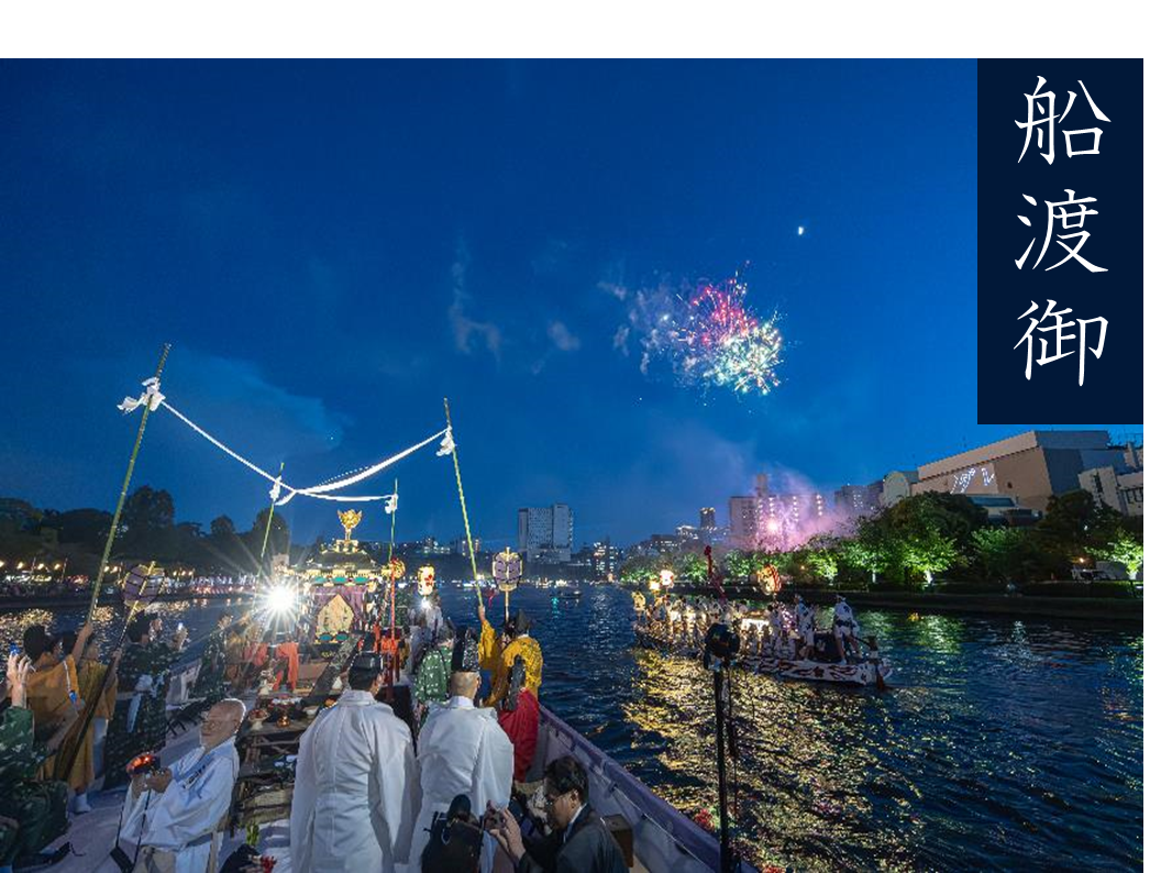 2024年7月25日(木):本宮祭、陸渡御・船渡御、奉納花火(日没~21:00頃を予定) ※荒天時は中止