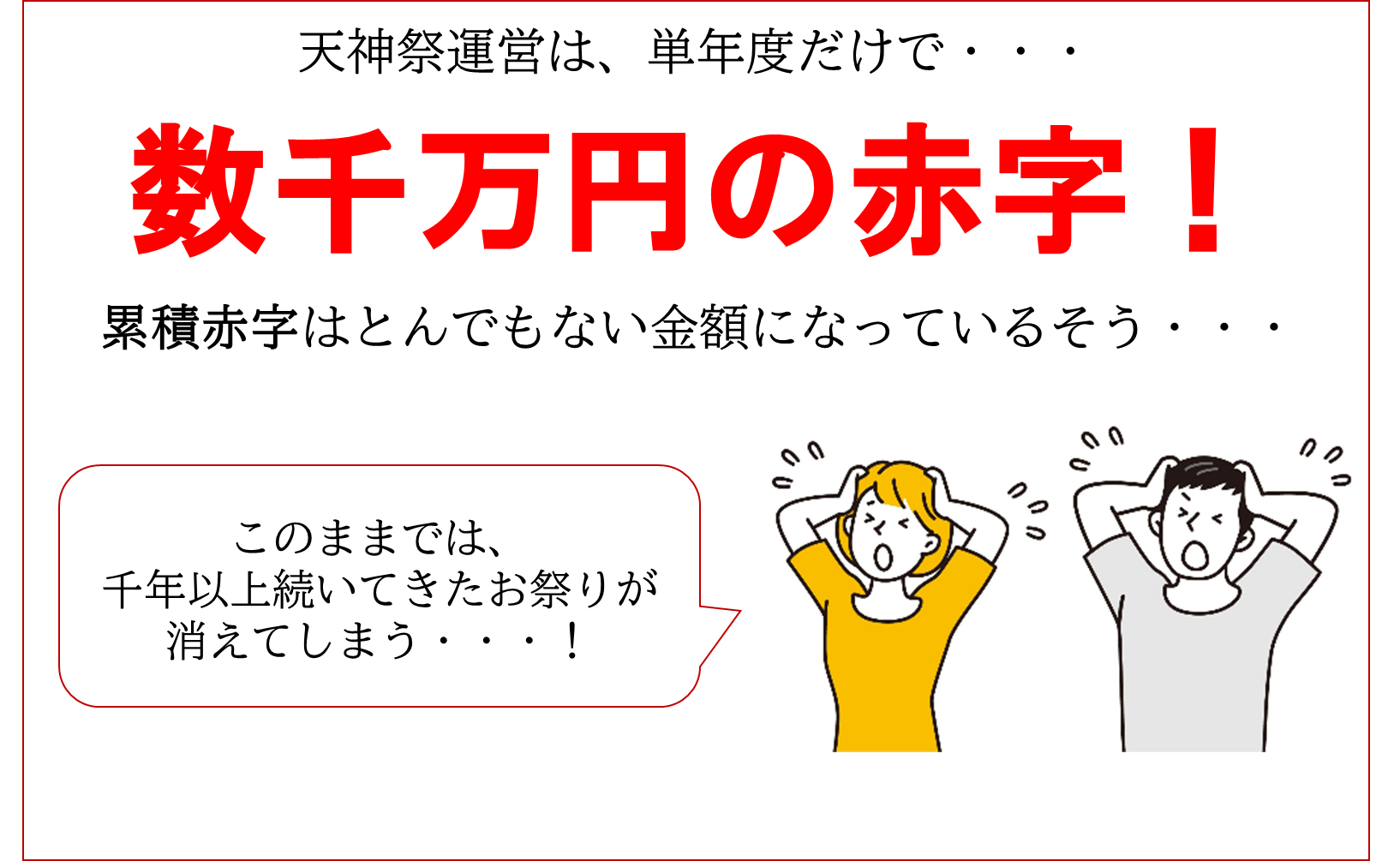 天神祭の運営には多大な経費が必要で、単年度だけで数千万円もの赤字を抱えています。