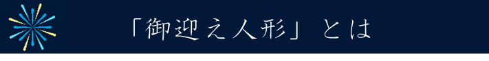 江戸時代、天神祭の船渡御を奉迎するために御迎船が作られ、御迎船を飾り立てるために製作されました。御迎え人形のキャラクターの多くは、大坂町人に人気の文楽や歌舞伎などから採られています。幕末の最盛期には50体を超えていましたが、現在は16体が伝えられています。