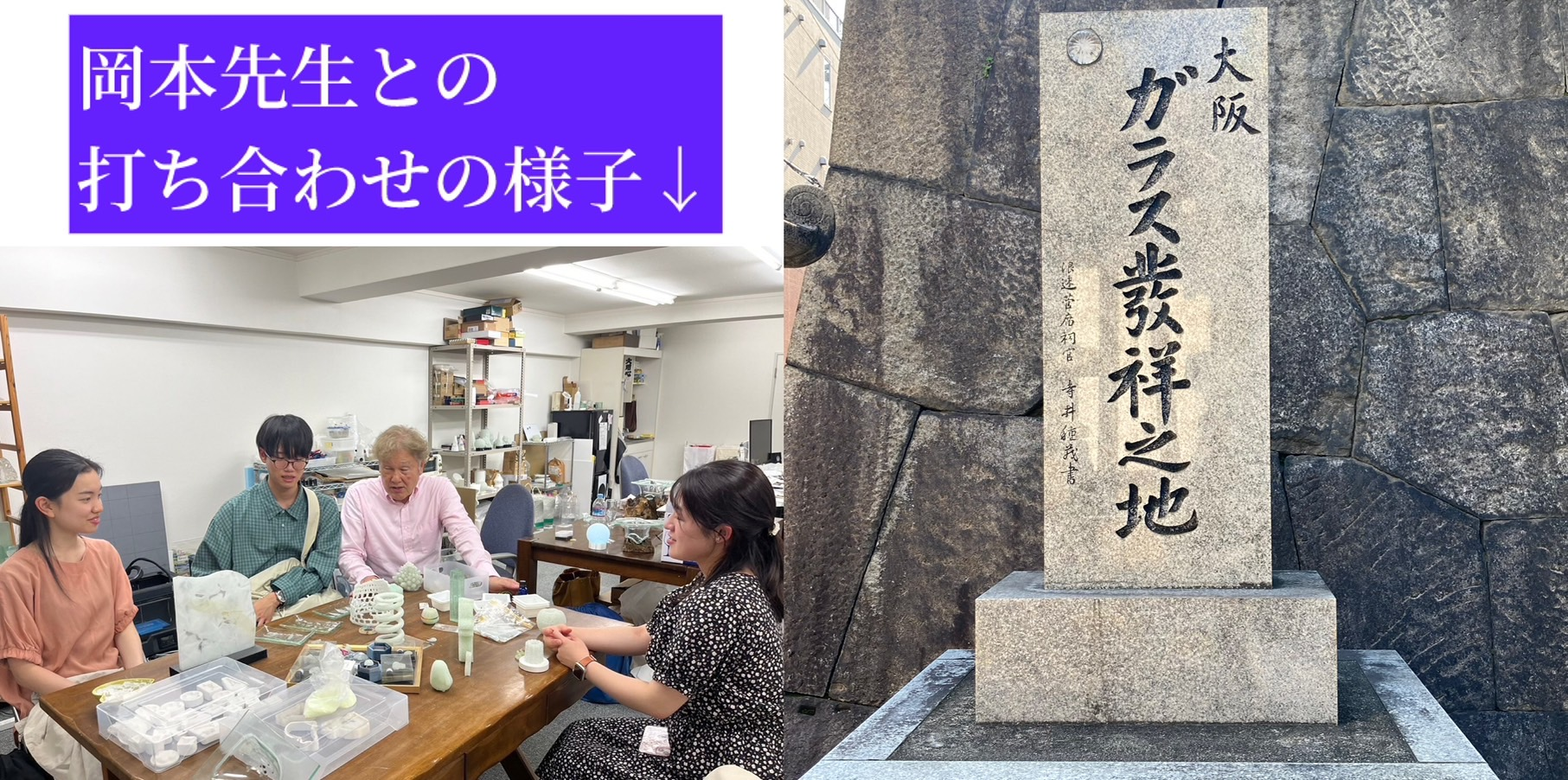 ガラスを利用してリターンを作りたいという学生プロジェクトのメンバーと、大阪天満宮の御神水舎作家であり、ガラスアーティストの岡本覚氏が “つながり”を持ち、ガラスを使ったリターンが誕生いたしました。