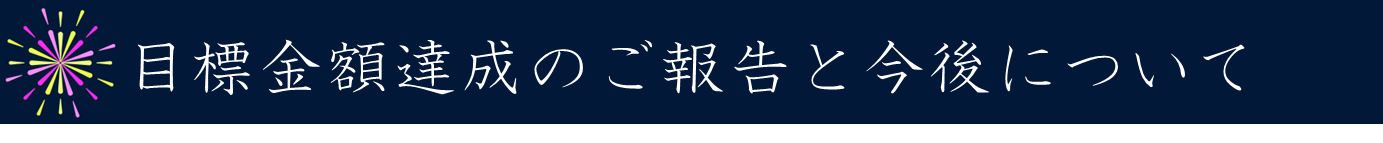 おかげさまで、当初の目標金額 100万円を達成することができました!!