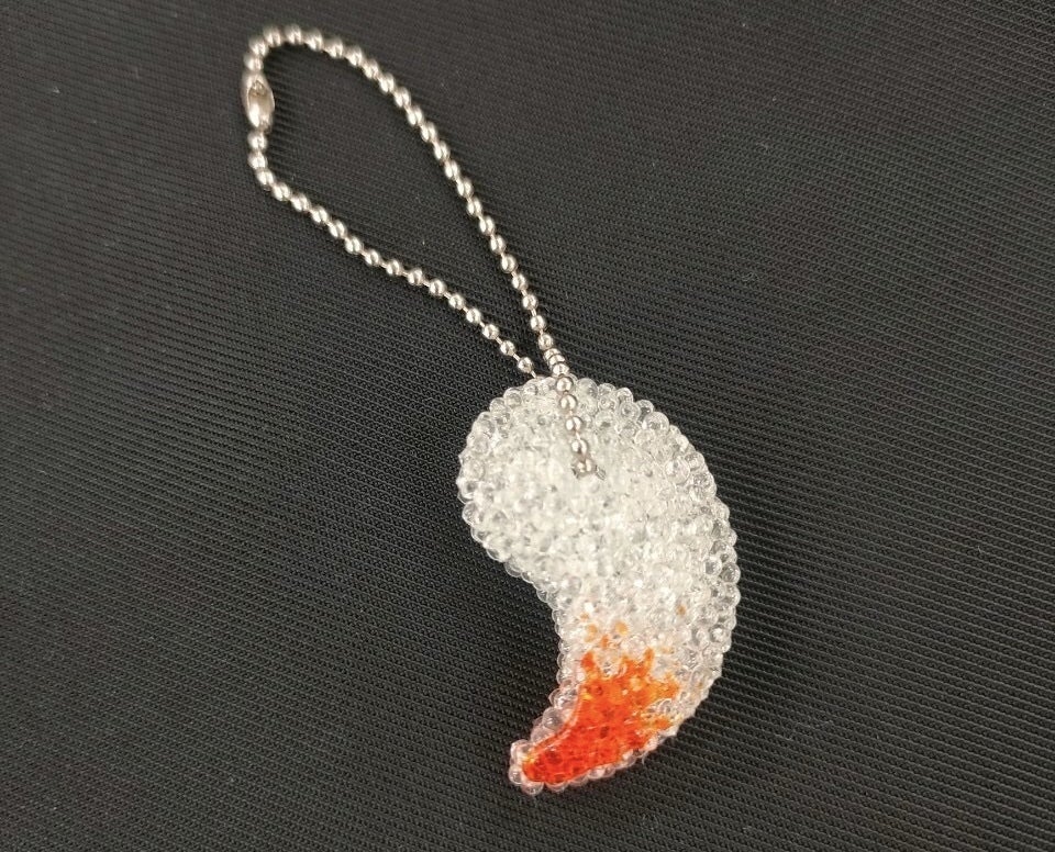 勾玉のキーホルダーはガラス作品です。空に透かしてみるととてもキレイ!天神祭限定、唯一無二の勾玉をぜひお手に取ってお楽しみください!