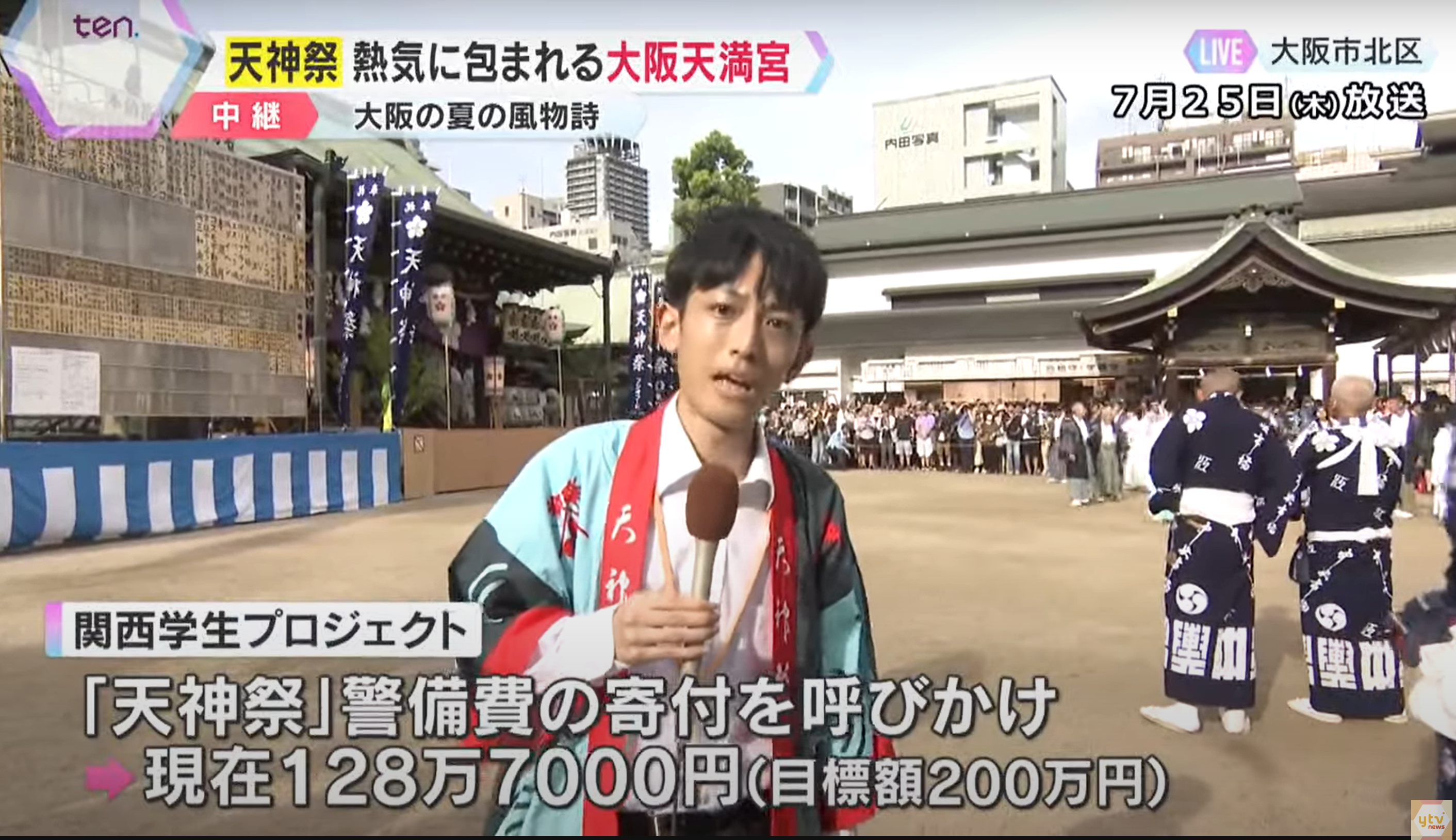 2024/07/28 16:04読売テレビ「関西情報ネット ten.」で【天神祭】関西学生プロジェクトについて紹介されました。ぜひご覧ください!https://www.youtube.com/watch?v=VAtEFY78Mhg もっと見る