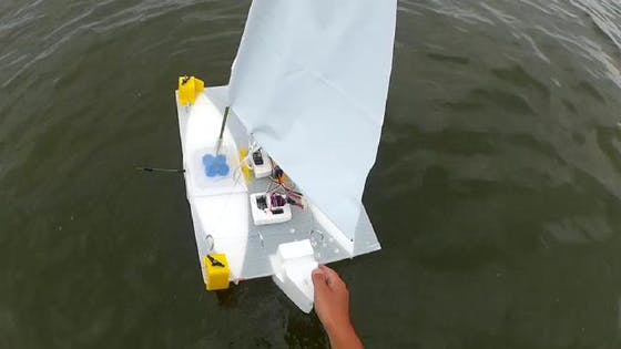 モーターは今回からギアードモーターといって、軸の回転数を調整させたものを採用しました。前回までは軸の回転が速すぎて、セイルの開き角度が全然調整できたものではありませんでした。