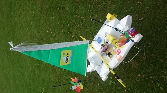 1m/s程度の微風でしたが風力発電フロートを浮かべてみました。