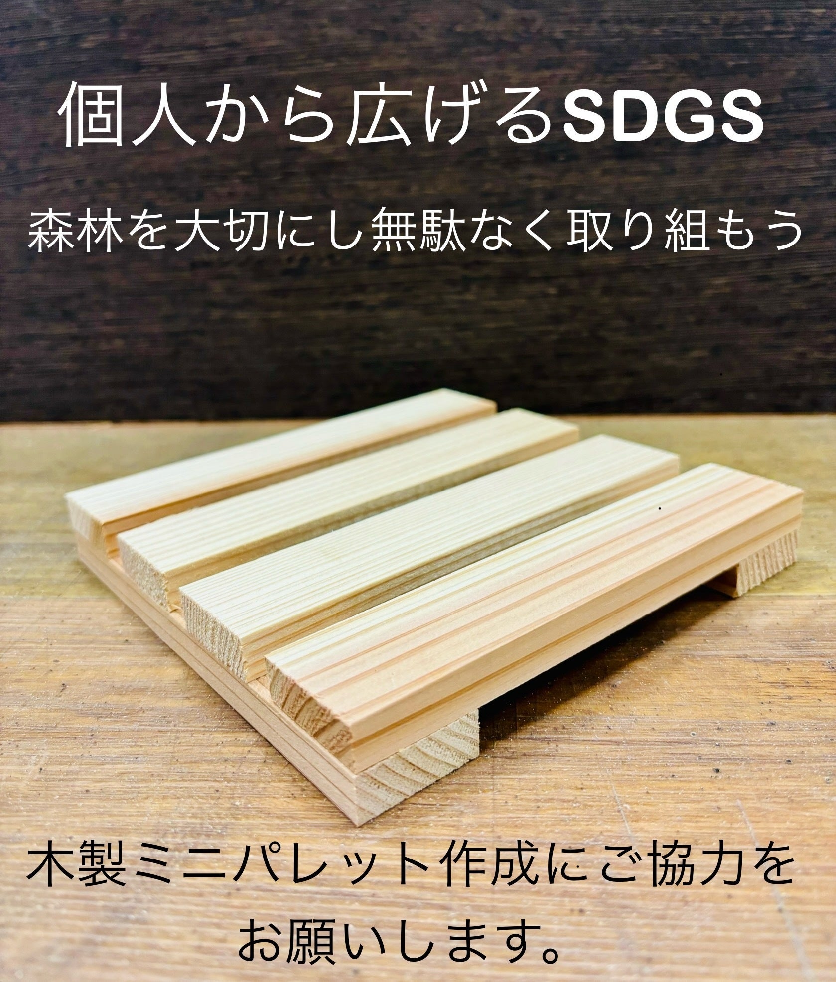私は、SDGsの取り組みに感銘を受け、建築業界で発生する端材を有効活用し、環境に優しいインテリア装飾やガーデニングで使用出来そうな木製ミニパレットを休日を利用して製作しています。私のミッションは、一つ一つの木材が持つ価値を最大限に活かしながら、持続可能な社会の構築に貢献することです。