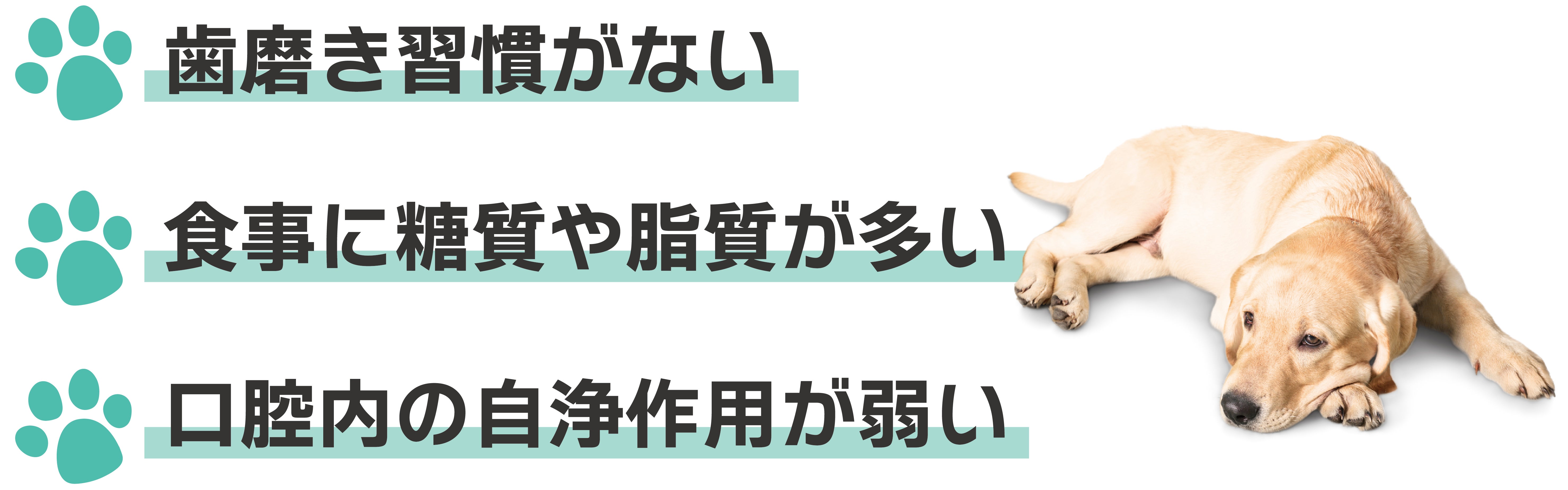 実はペットは人間よりも口内環境が悪化しやすいのです。理由には以下の3つがあります。