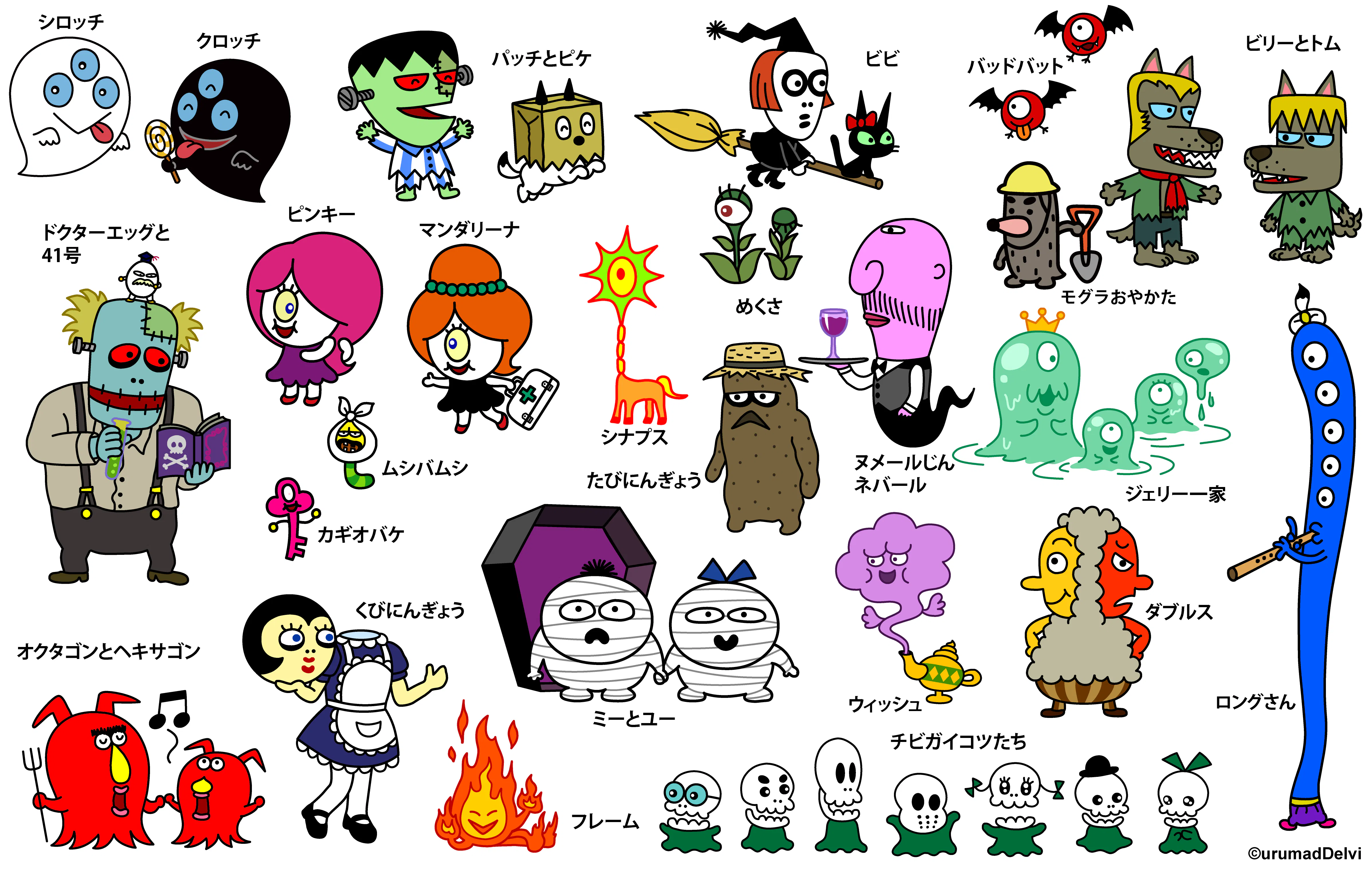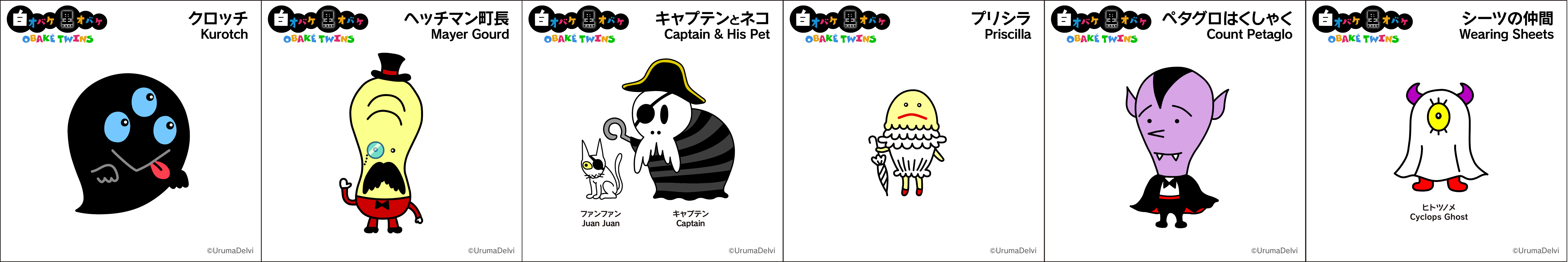 さあさあもうすぐ楽しいおばけ祭りだよ。屋台にお芝居にお化け屋敷と、それぞれのオバケが工夫を凝らして出し物を考えているよ。今度の満月の夜はオバケの学校に来てね!シロッチとクロッチは元気よくてビラ配り。