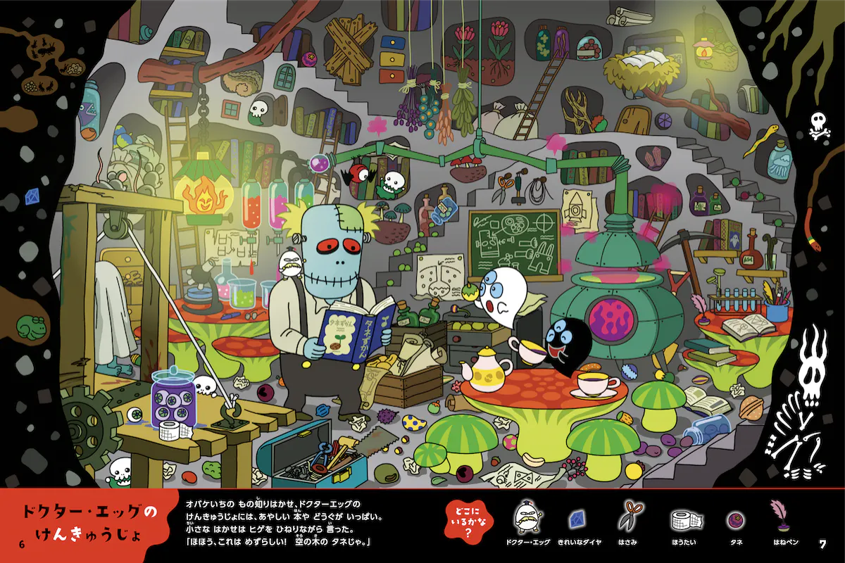 その秘密は豊かなインタラクション。単に物語を読むだけではなく、絵の中に隠されたオバケを見つけたり、迷路遊びを楽しめるなど、読者が主体となって楽しむことで、読むたびに新たな発見があります。