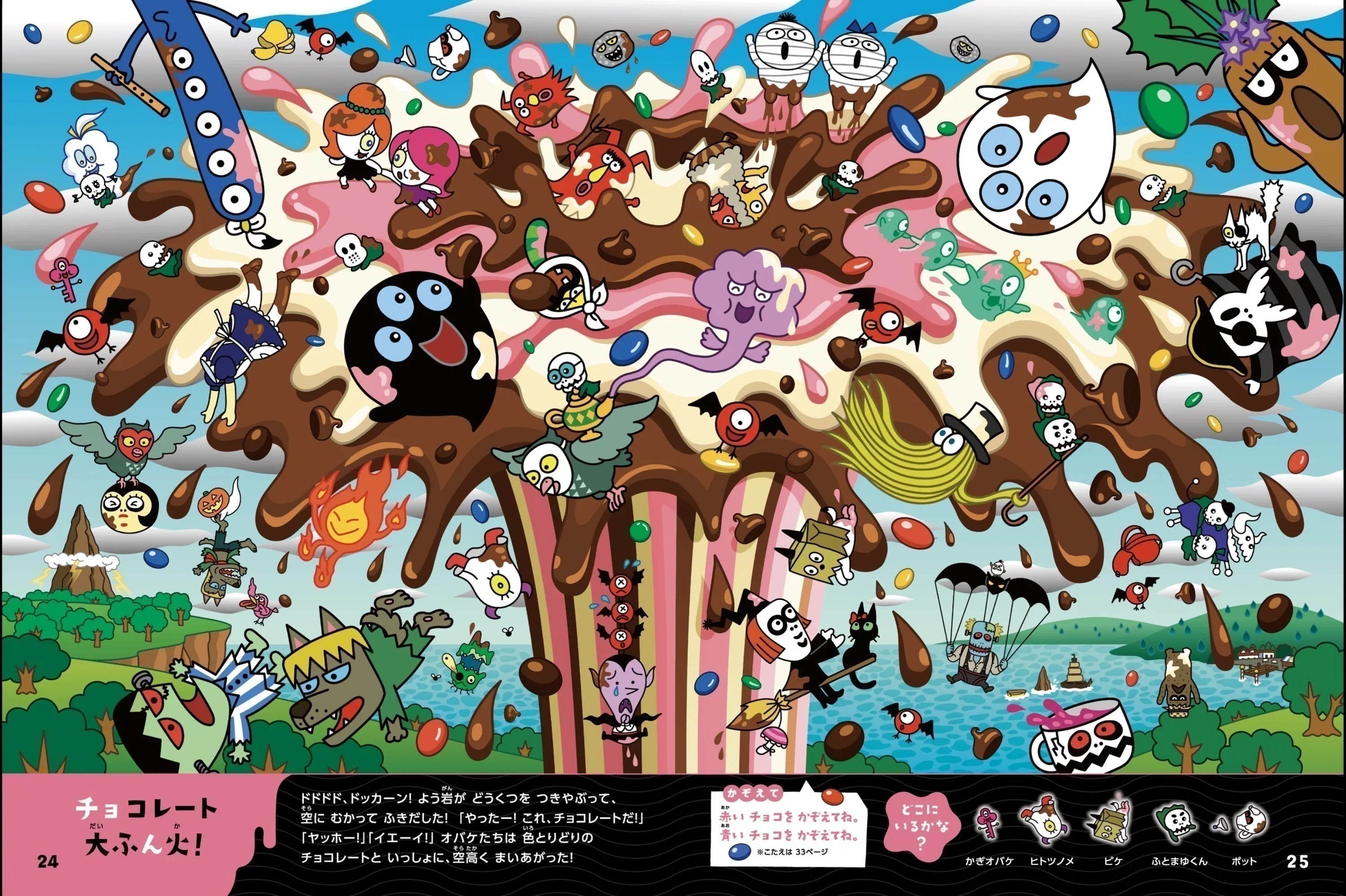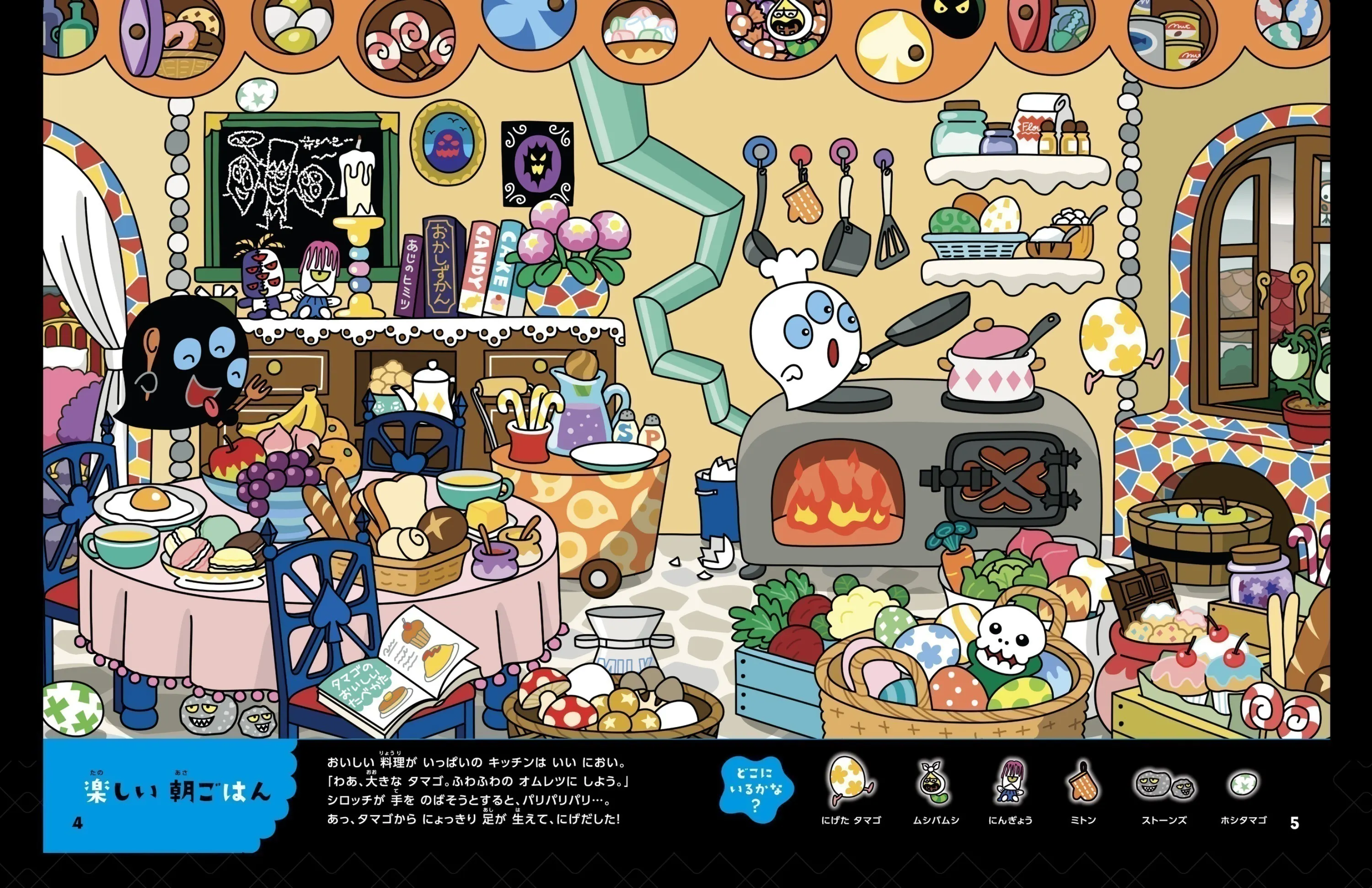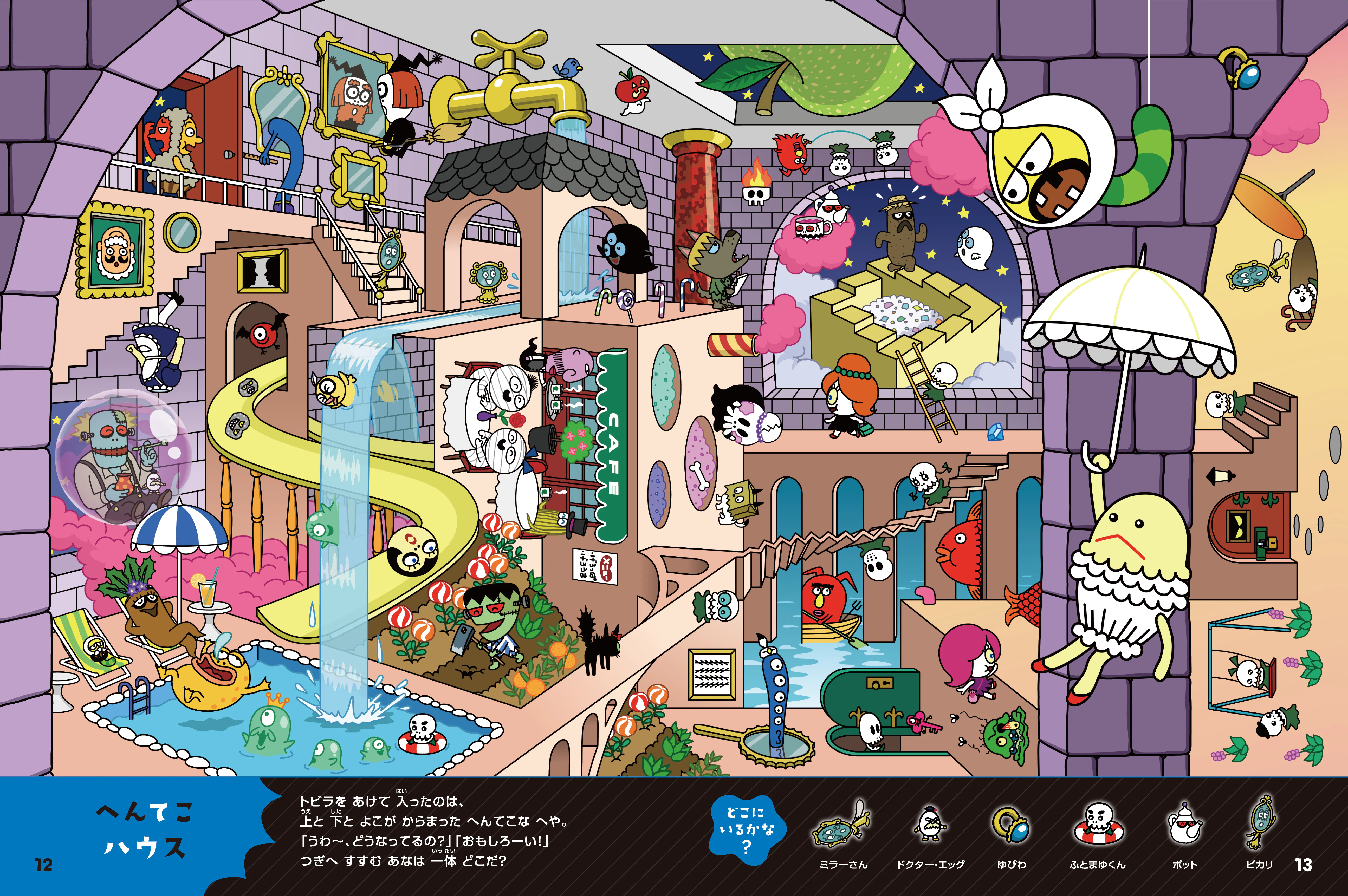 各ページは、絵の中にあるアイテムを探すクイズになっています。どこにあるかな?