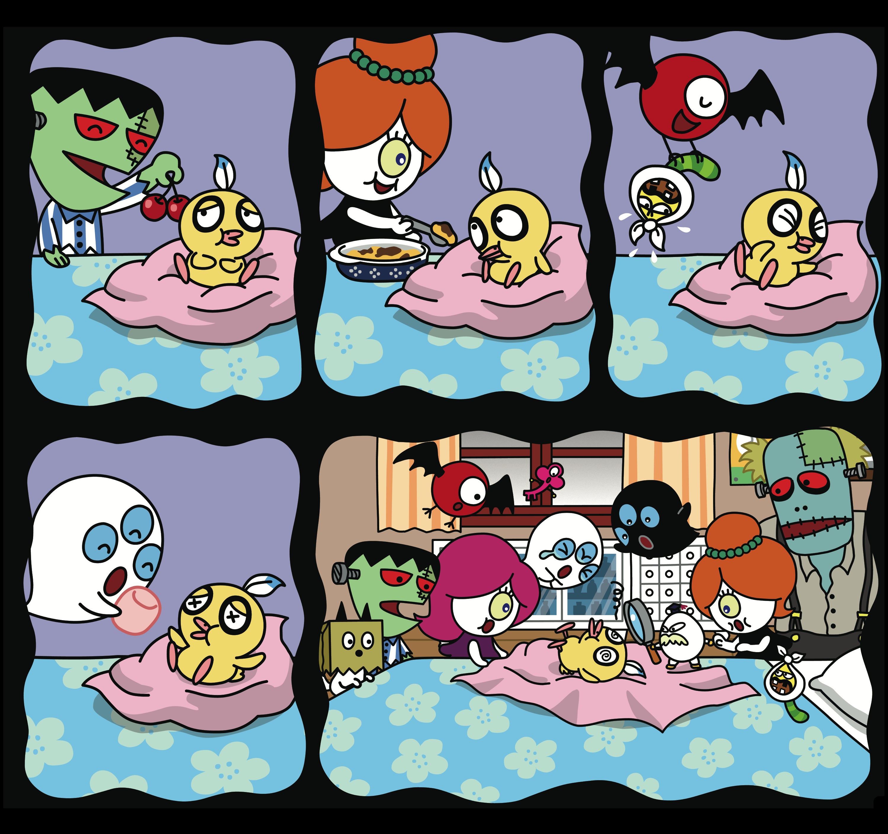 第一弾がヒットしたので第2弾!オバケにはそれぞれ名前があります。白オバケはシロッチ、黒オバケはクロッチ。2人が朝ごはんを作っていると、なんとタマゴに足が生えて逃げ出します。タマゴの正体は何なの?このあとどうなるの?それは本編を見てのお楽しみ。