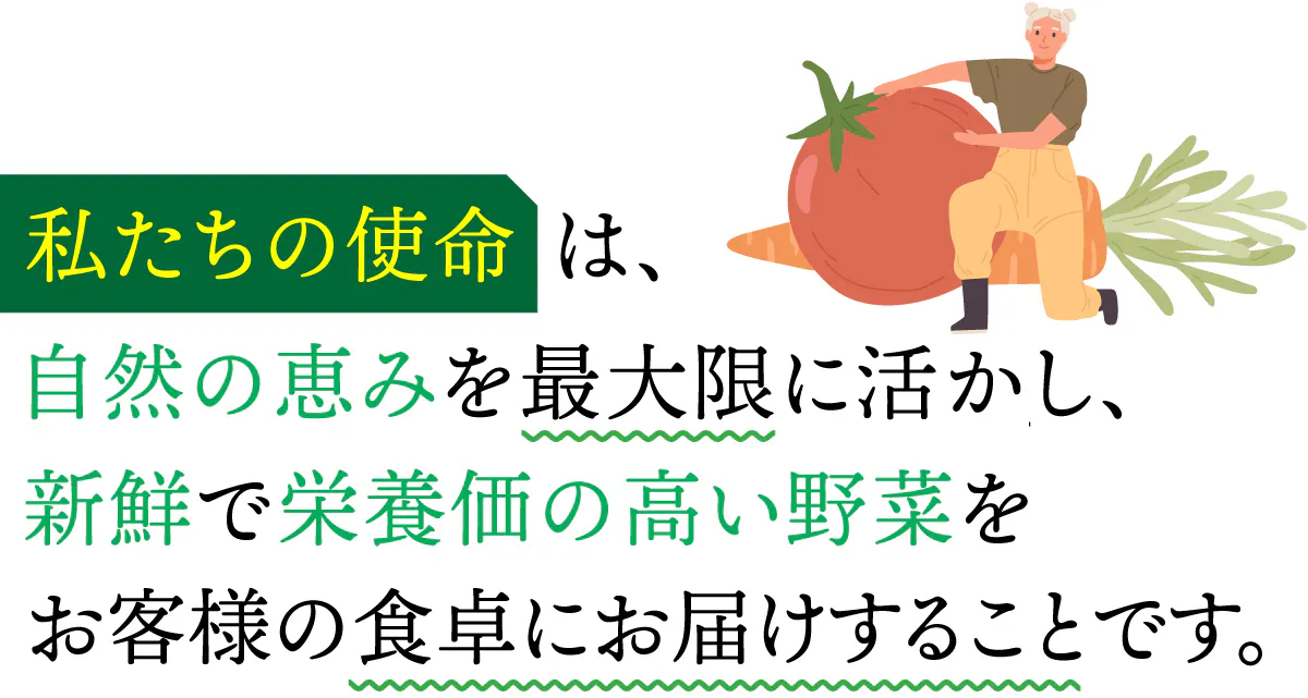 私たちの野菜で毎日の食事をもっと楽しく、もっと健康的に。