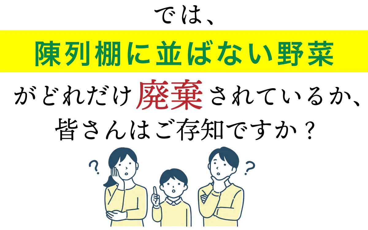 農園で収穫される野菜の約30%が、出荷基準を満たさない「(販売されない)野菜」として廃棄されています。
