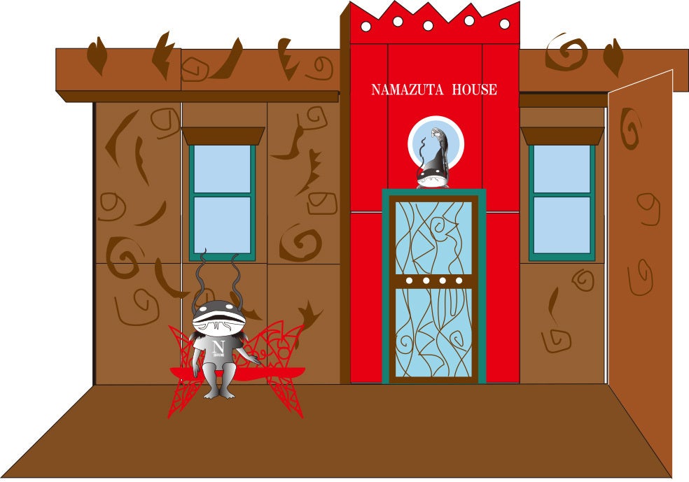 「ナマズマン」鯰田という地名にちなんで、そのまんま「なまず」です(笑)そして、こちらが「ナマズタハウス」の入口デザインです。錆ていく鋼板とペイントされた鋼板を組み合わせたデザインです。ベンチに座って「ナマズマン」と一緒に記念撮影できるようにしたいと思います。現在の写真はこちら ↓変化していく過程も楽しみでワクワクしています。建物へ向かう石畳や石垣は、亡くなられたお父様が一人でコツコツと積み上げていったそうです。とっても味がありますので、そのまま使わせていただきます。皆様のあたたかい応援、ご支援をいただき、とってもワクワクしながら構想が膨らんでいます。次回は、家の中撮影してきますね!