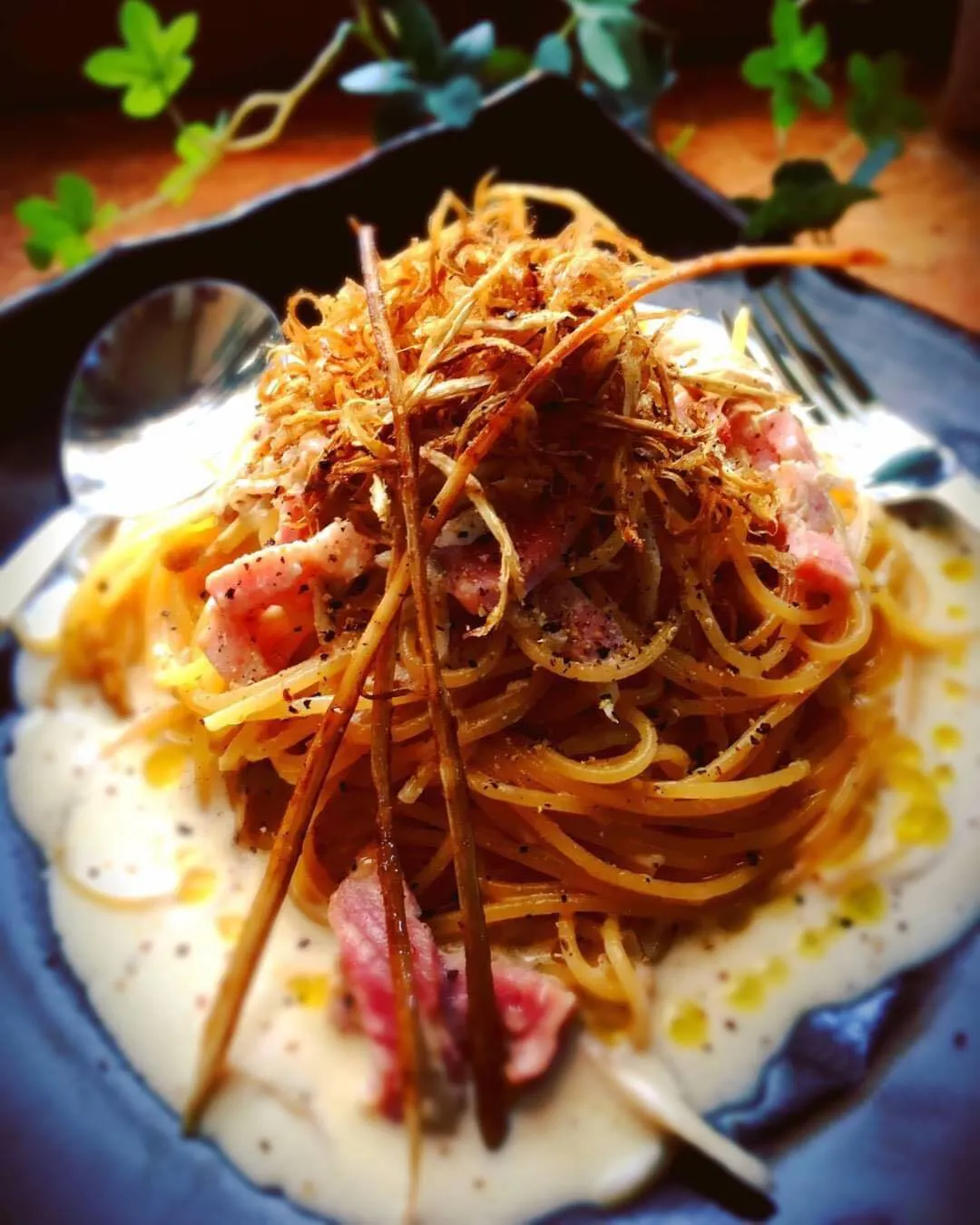 流通にのれない細いゴボウを使ったクリームパスタ