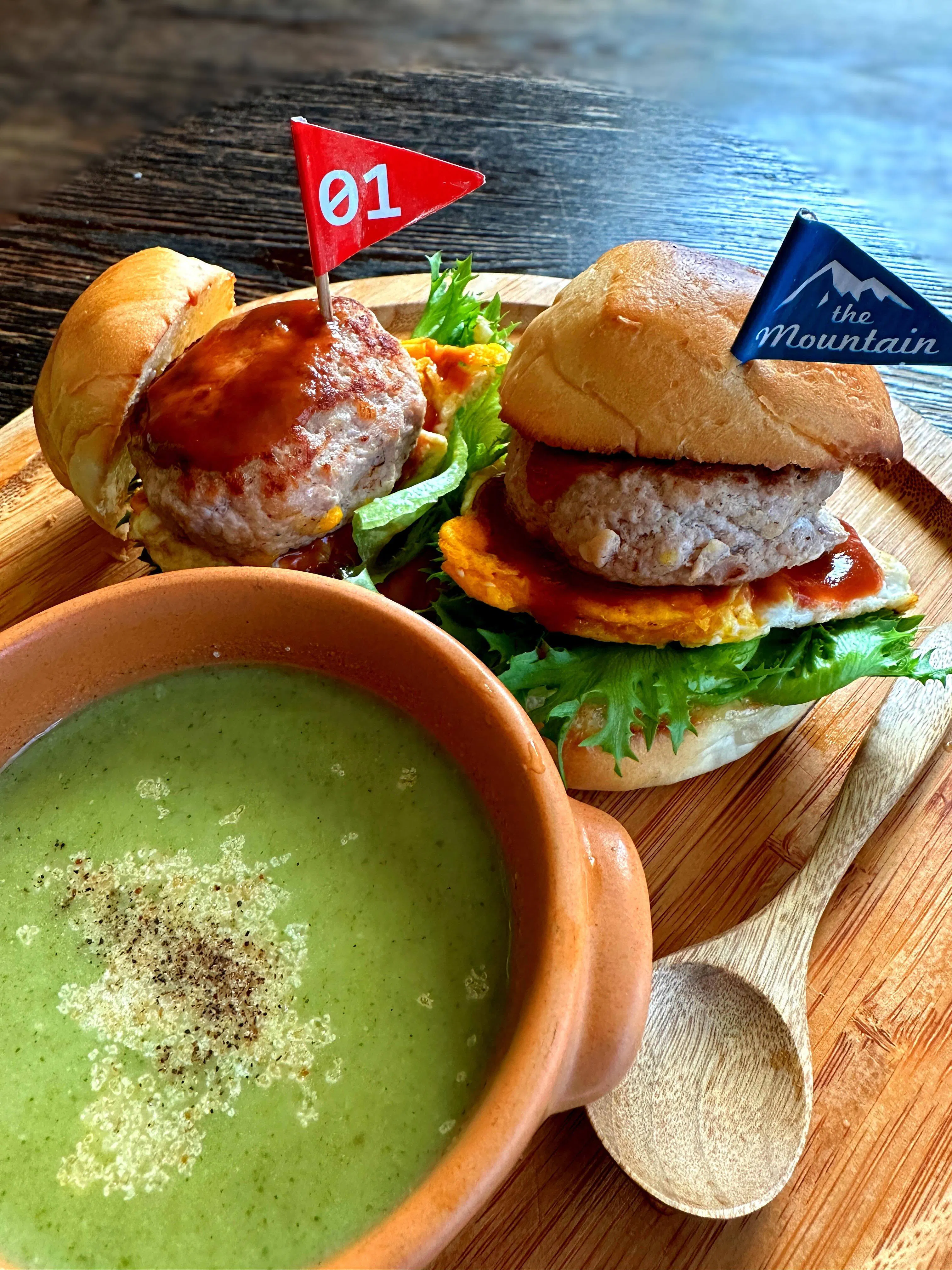 パティとブロッコリーポタージュに、甘酒や糀調味料を使用