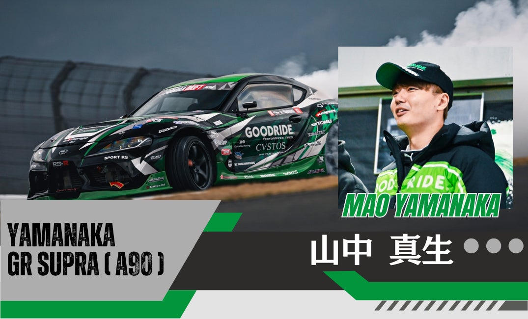 GOODRIDE MOTORSPORTSワークスドライバーの山中真生です。 今年でこのチーム体制で走らせて頂くのも3年目となります。 自分が乗らせて頂くスープラも戦える車になってきたと思います。 今シーズンは結果を残し、シリーズチャンピオンを取れるように頑張ります。 皆様、チーム一丸となり頑張りますので応援宜しくお願い致します。