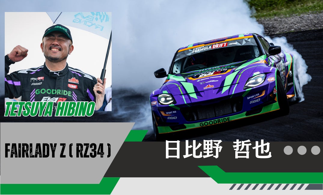GOODRIDE MOTORSPOTSドライバー、日比野哲也です。 去年に引き続き RZ34で参戦させていただき、誰よりもカッコ良い走りをします!!GOODRIDEドライバーの誰かが、シリーズチャンピオンを獲ります。