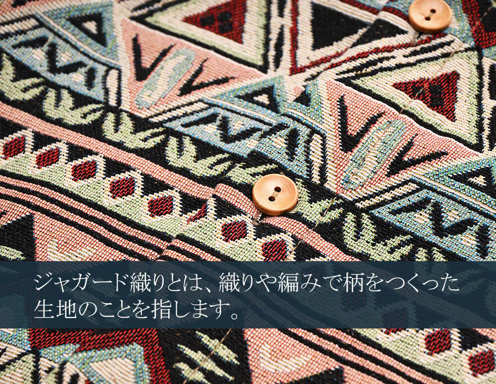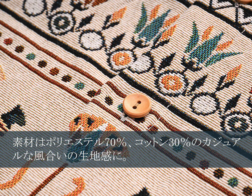 全面にあしらわれている総柄はプリントではなく“ジャガード織り”で表現されています。