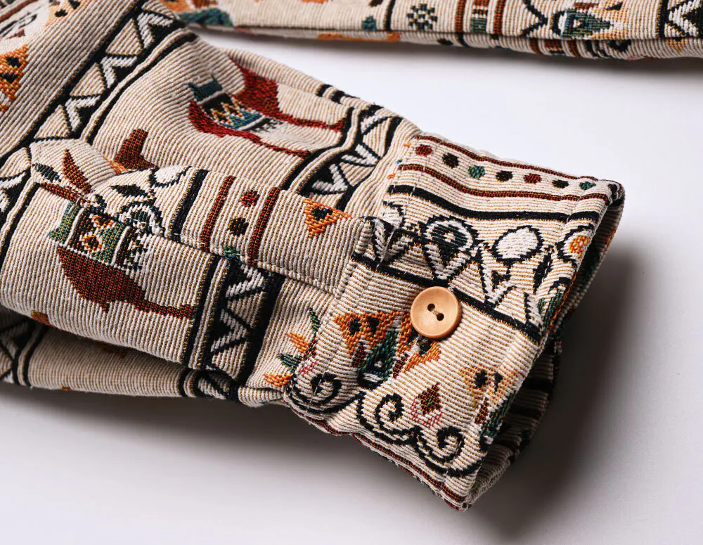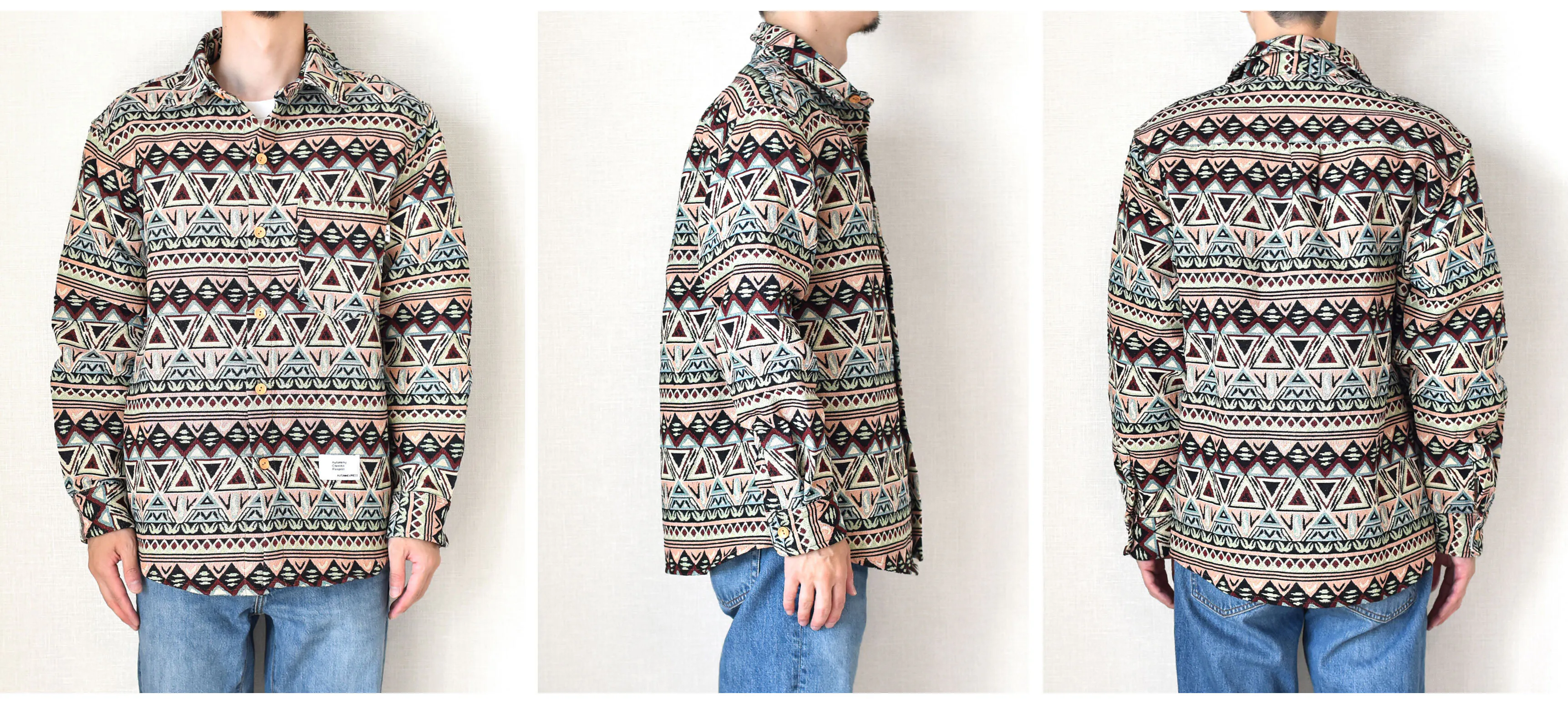ジャガード織り総柄ロングスリーブシャツ