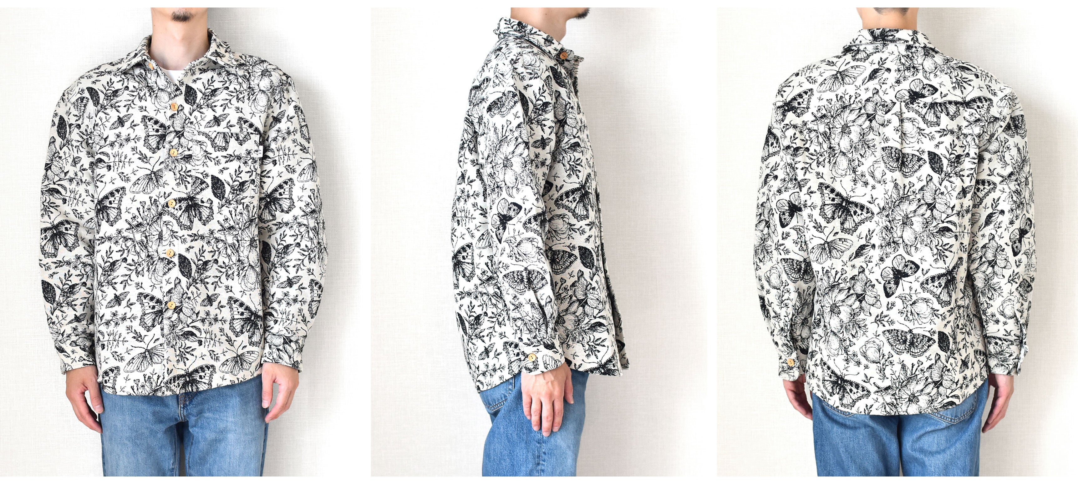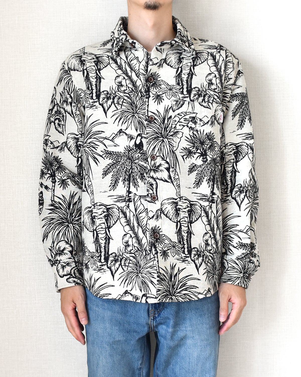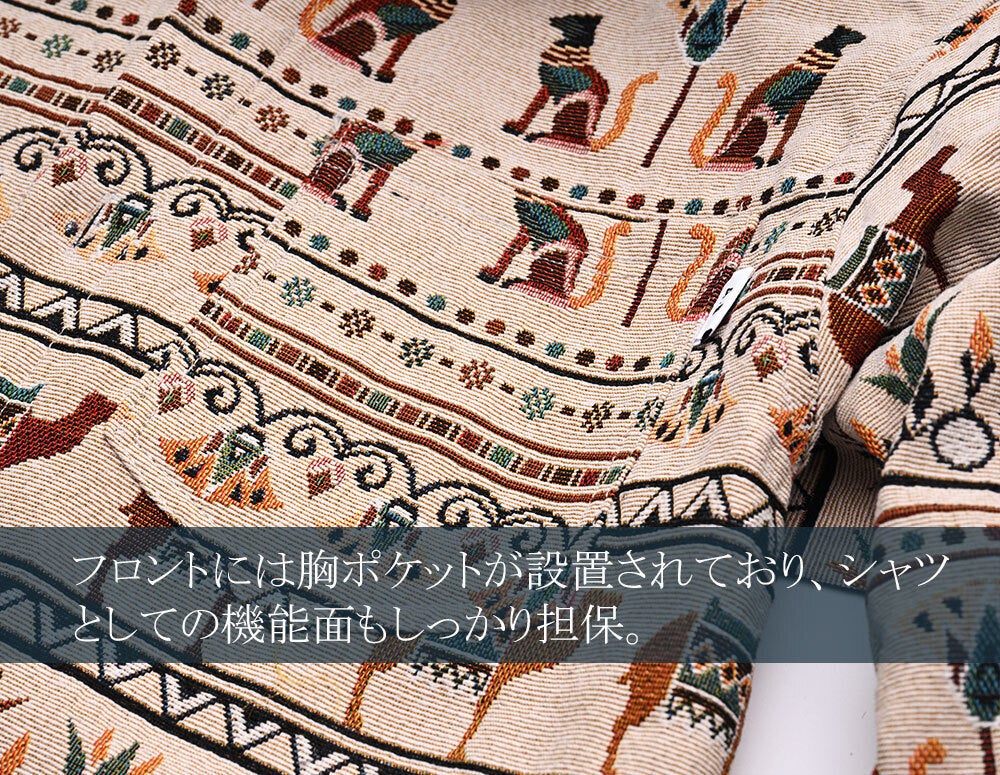 今回リリースする総柄ロングスリーブシャツ、ボタニカル柄、サバンナ柄、ジャングル柄、エスニック柄、エジプト柄と5つの柄で展開しています。