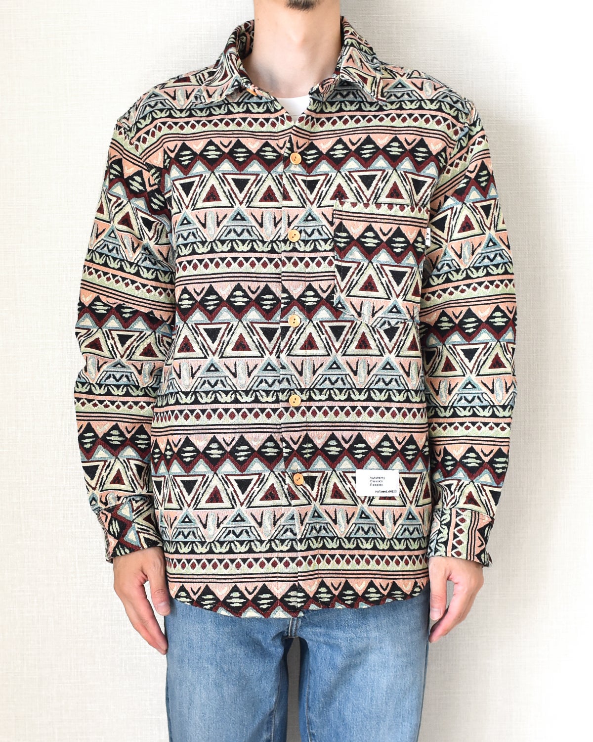 ジャガード織り総柄ロングスリーブシャツ