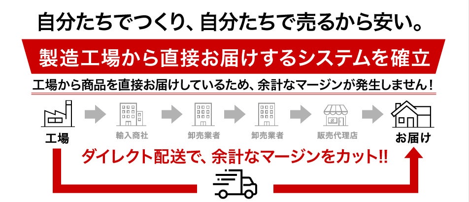 そうすることで余計なコストを省き、相場よりも遥かにリーズナブルな価格帯でお届けすることが可能となっています。