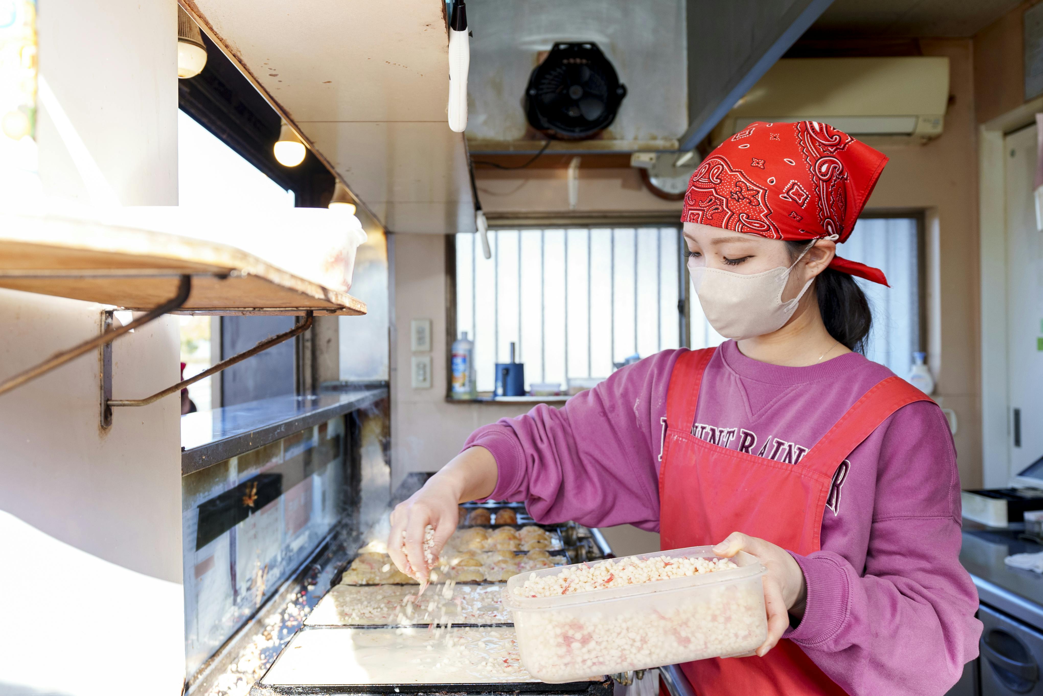 お届けする冷凍たこ焼きも、スタッフが1個1個願いを込めて焼いています。
