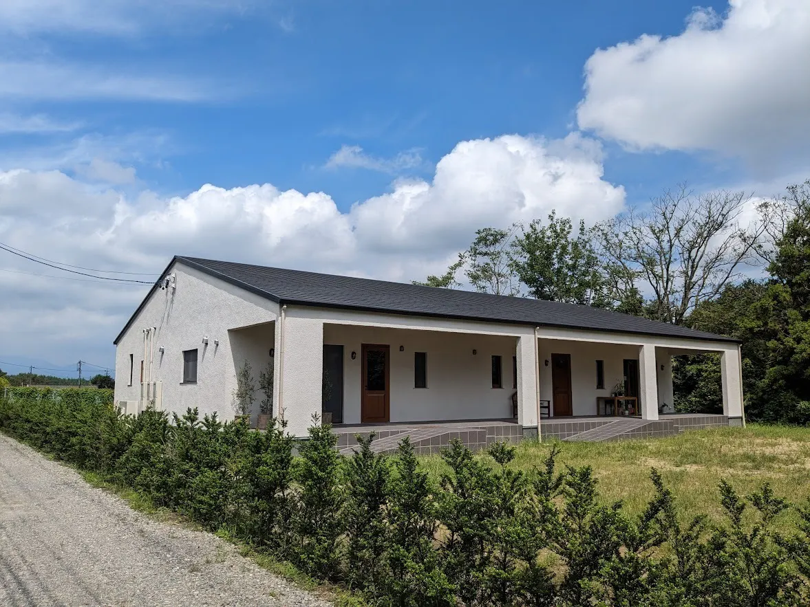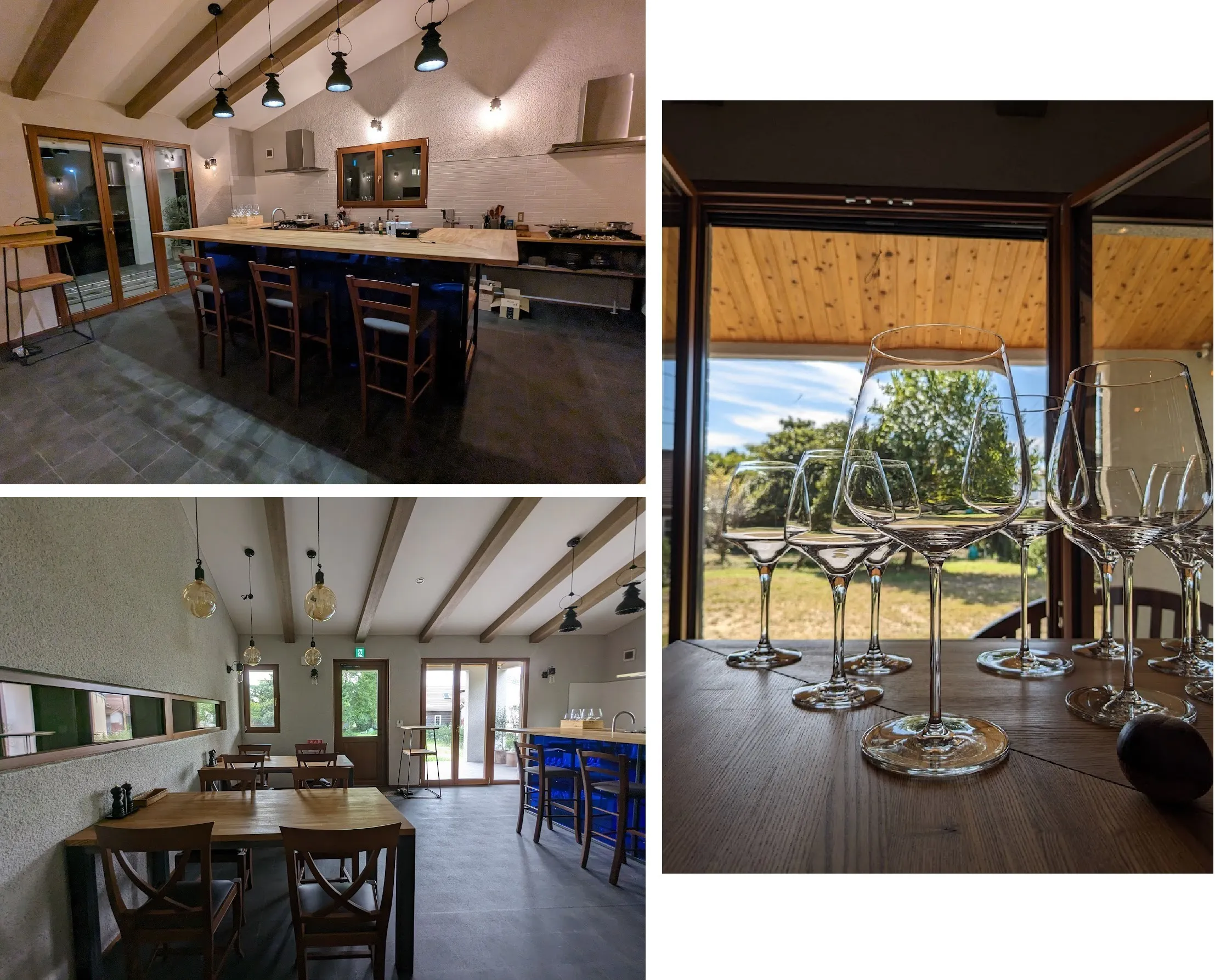 自分達で調理が楽しめるダイニングキッチンを備えた、宿泊料金にワインテイスティングが含まれる宿泊所です。日本伝統の在来工法を採用、バリアフリー設計、土石流を粉末にしたシラス素材の内外壁、イタリア規格の窓や扉、イタリア直輸入の水回りや照明、自作のバーカウンターやダイニングテーブル、ワインセラー等、細部にかなり拘ったワイン愛好家の為の特別な宿泊所です。