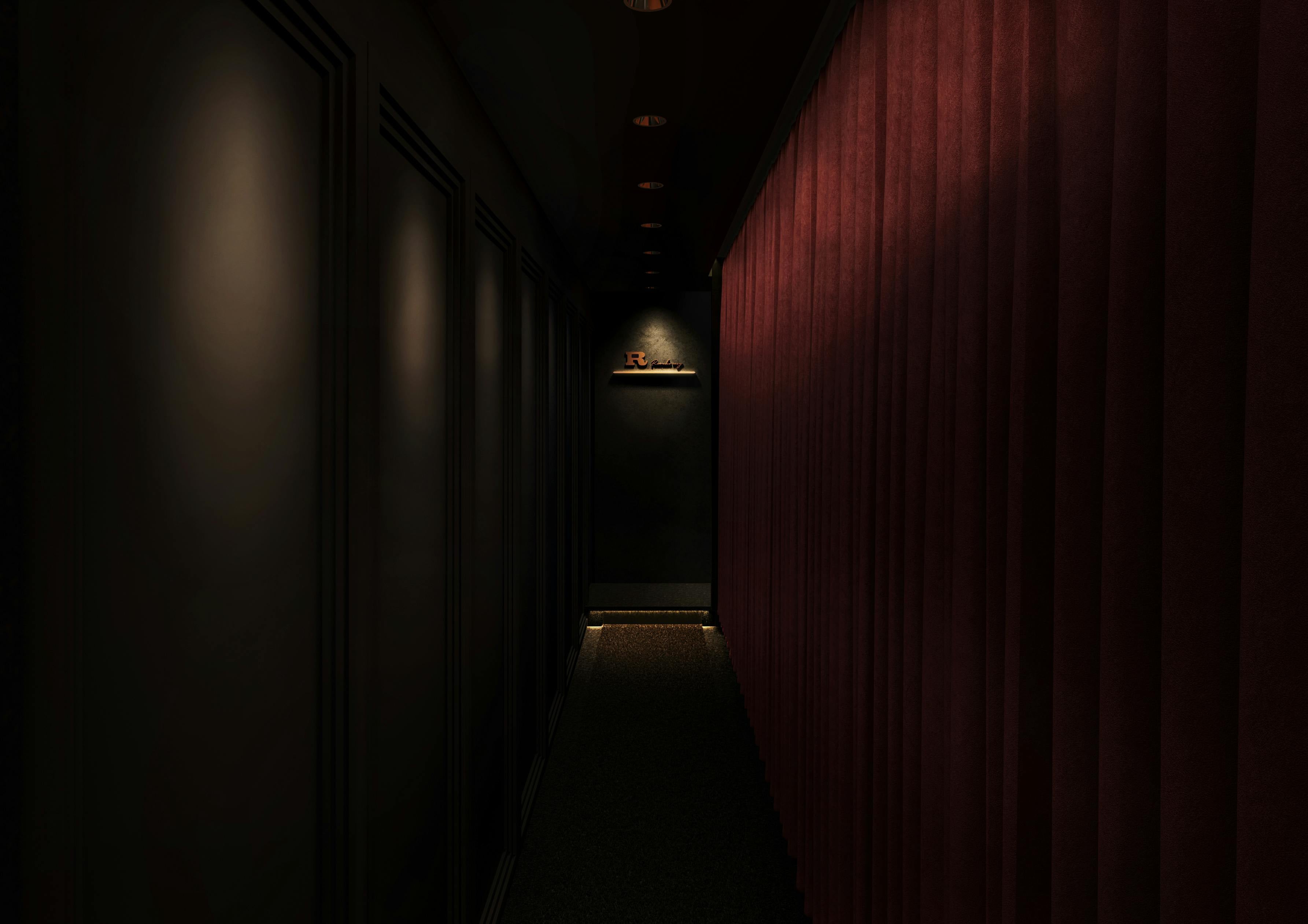 カウンターを一つの舞台に見立て、長く続くエントランスにはエレガントなモチーフを配する事で歩き進めるごとに高揚感のあるアプローチへと昇華した。至極の文化体験の幕が開く。