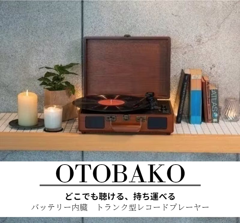 今回ご紹介する「OTOBAKO」はアンプ・スピーカーを内蔵しているポータブルのレコードプレーヤーです。1台で完結するため追加の設備は不要!コストやスペースを減らす工夫を込めたレコードプレイヤーです。