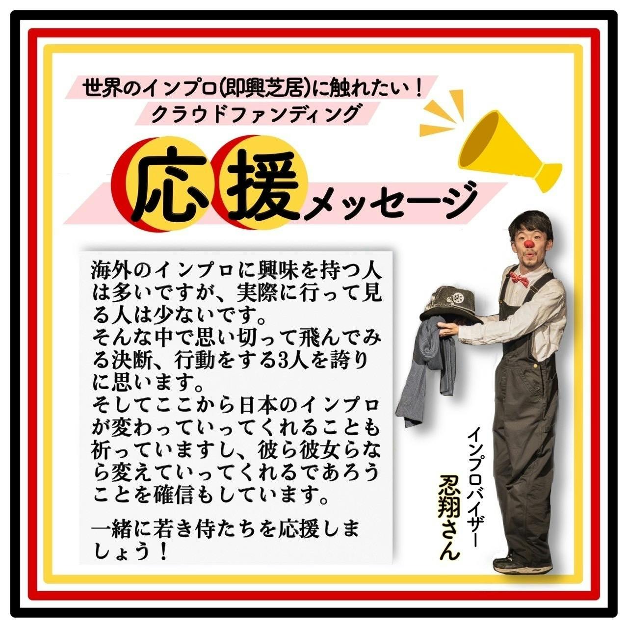 インプロバイザーとして世界中で活躍されている忍翔さんから、応援メッセージをいただきました!